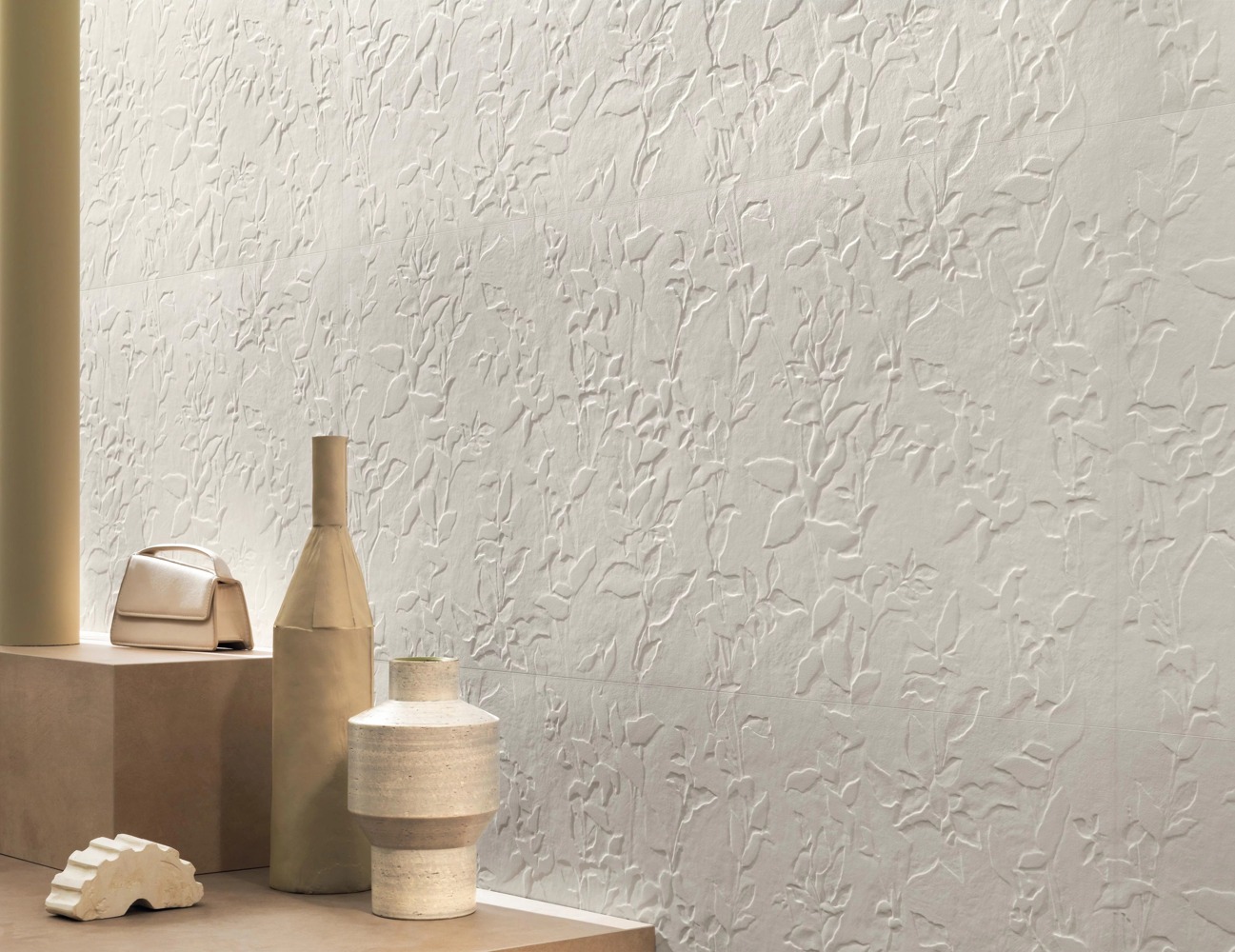 Коллекция трехмерной настенной плитки 3D Wall Plaster украшает поверхности интерьеров рельефом чисто-белого цвета. 5 трехмерных поверхностей покрывают большие стены необычными декоративными мотивами, придавая пространствам лаконичную элегантность.