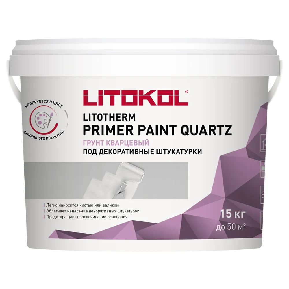 Грунтовка LITOTHERM PRIMER PAINT QUARTZ используется для наружных и внутренних работ, для создания адгезионного слоя перед нанесением полимерных декоративных штукатурок и красок, а так же перед тонкослойным выравниванием.