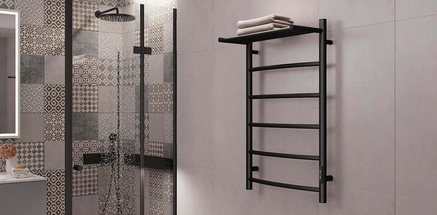 Электрические полотенцесушители Афина с греющим кабелем в цвете черный матовый (RAL 9005), белый матовый (RAL 9016), выполнены из конструкционной стали с толщиной стенки 1,5 мм.