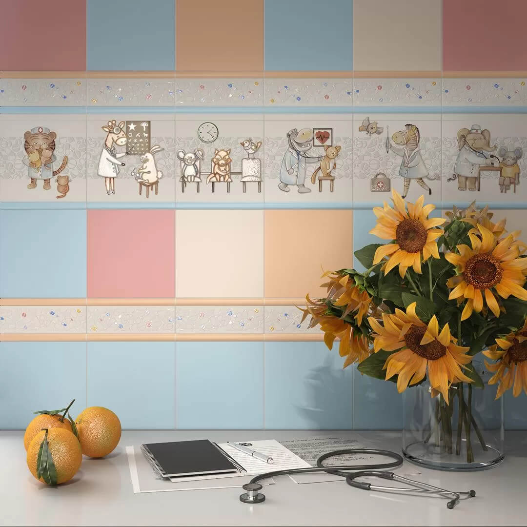 Коллекция Kerama Marazzi Айболит может применяться для ванной. Воплотить дизайнерские решения из цветов белый и из матовая поверхности. В состав коллекции входят элементы в колличестве 7 шт. среди которых настенная плитка, бордюр. При производстве данной серии использовались такие материалы как, керамическая плитка. Коллекция Айболит в своем составе имеет следующие размеры: 20x20, 6x20.