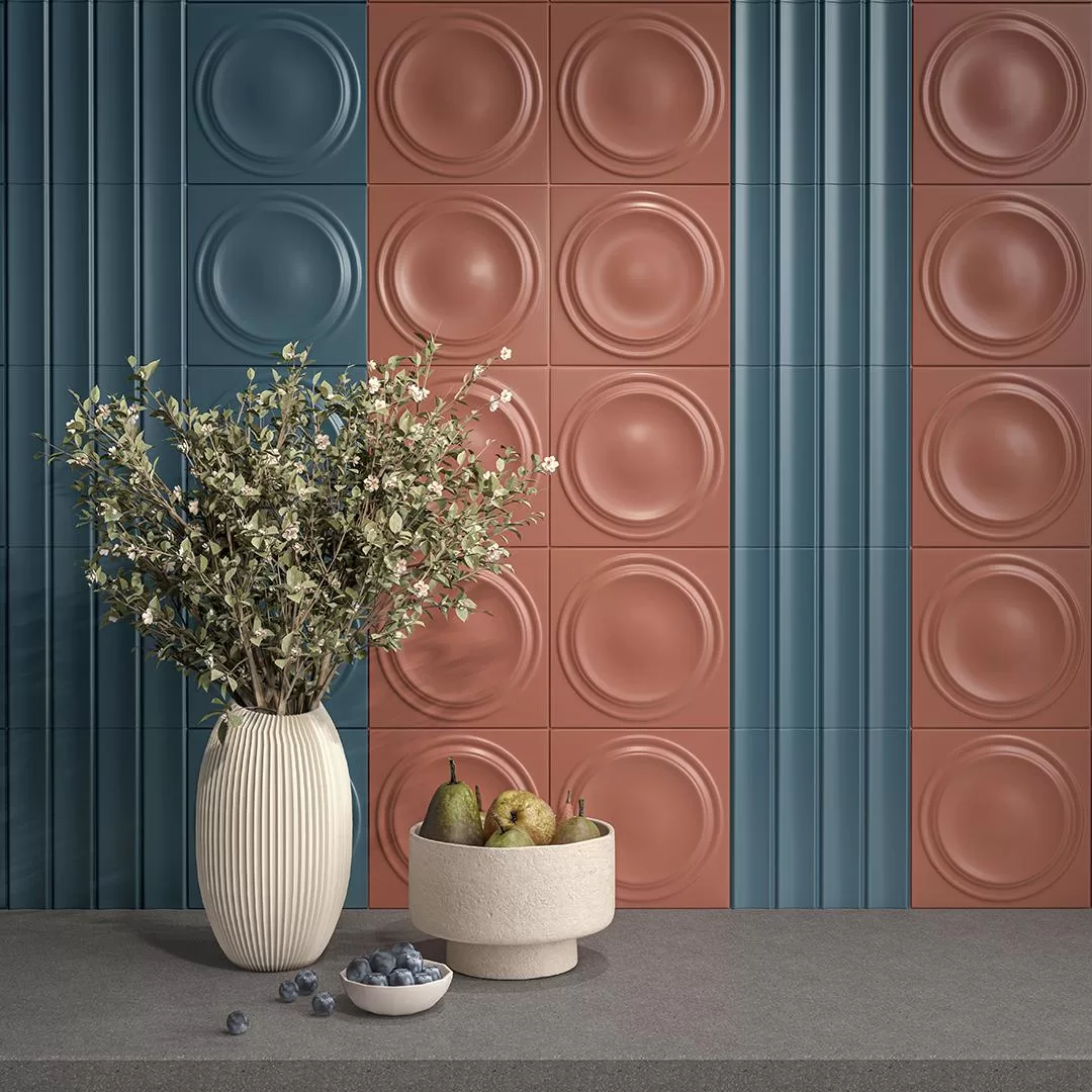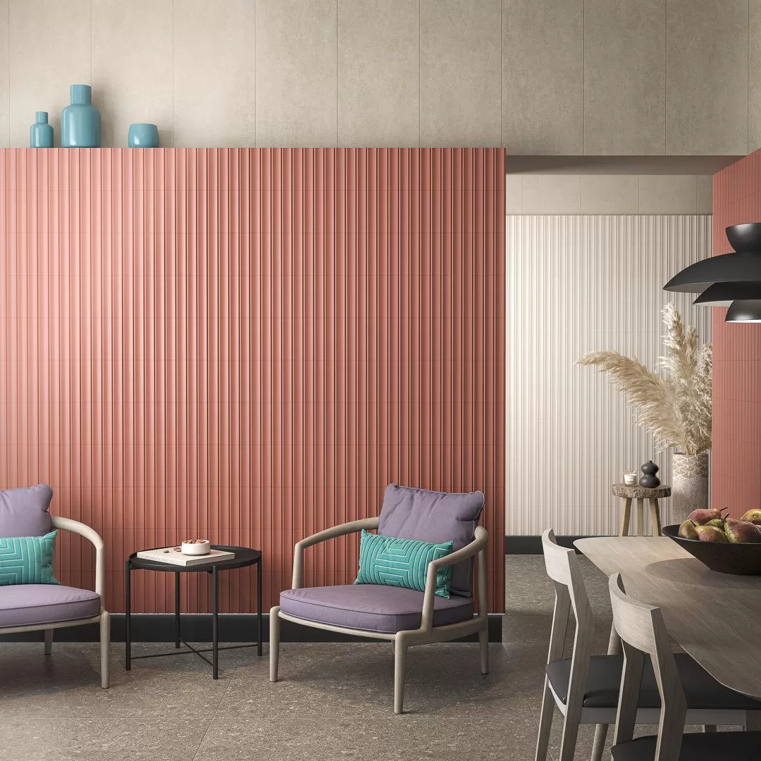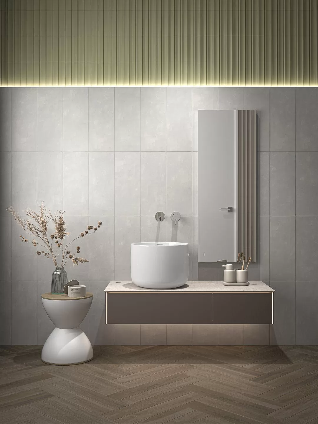 Серия «Аква Альта» предлагает два варианта структурированной плитки 20×20, которая может стать эффектным дополнением или основным содержанием большой керамической композиции.