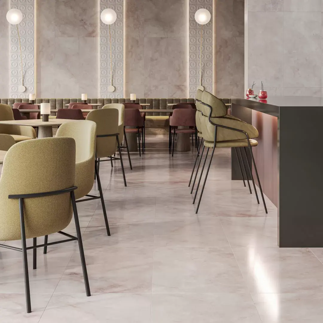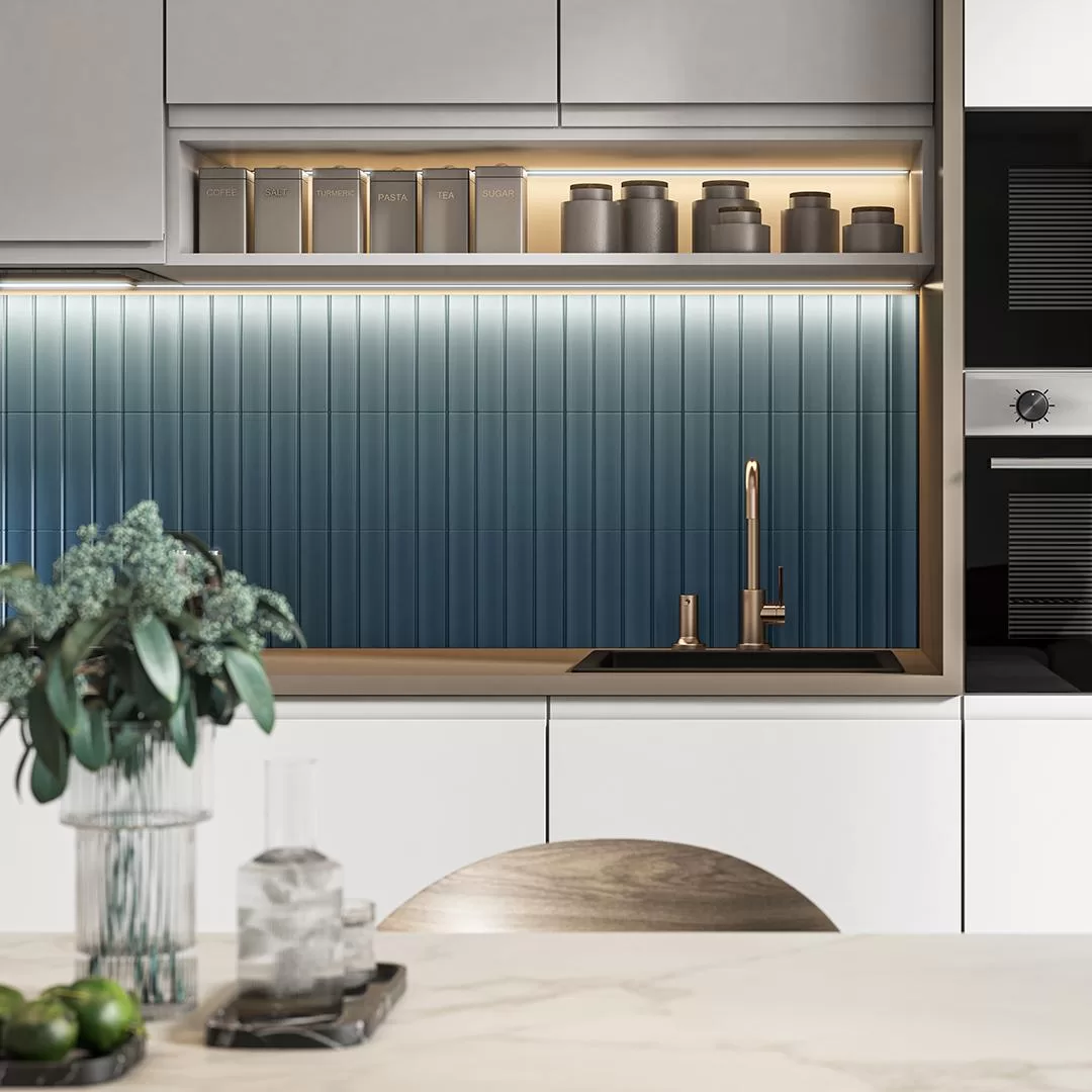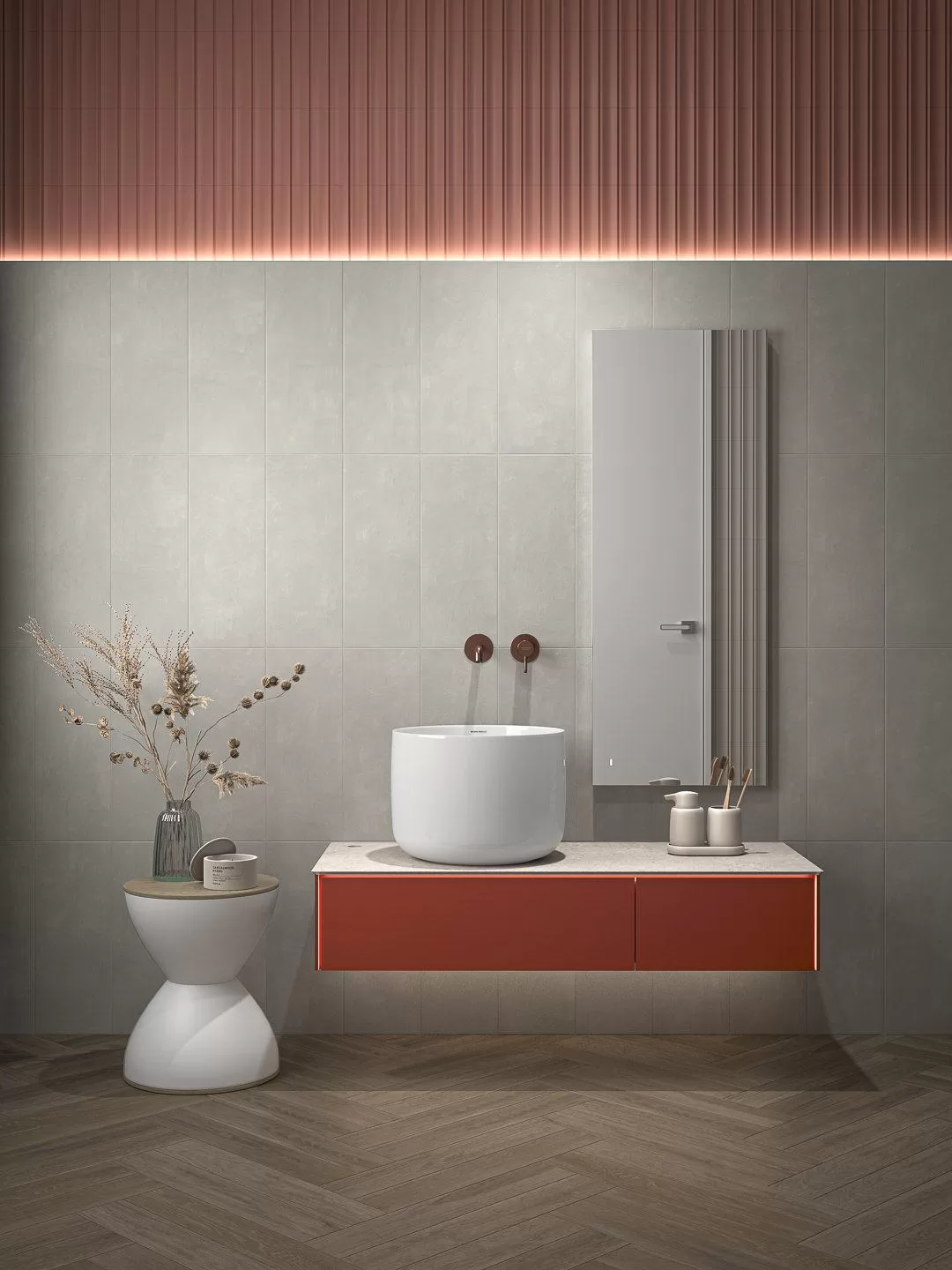 Серия «Аква Альта» предлагает два варианта структурированной плитки 20×20, которая может стать эффектным дополнением или основным содержанием большой керамической композиции.