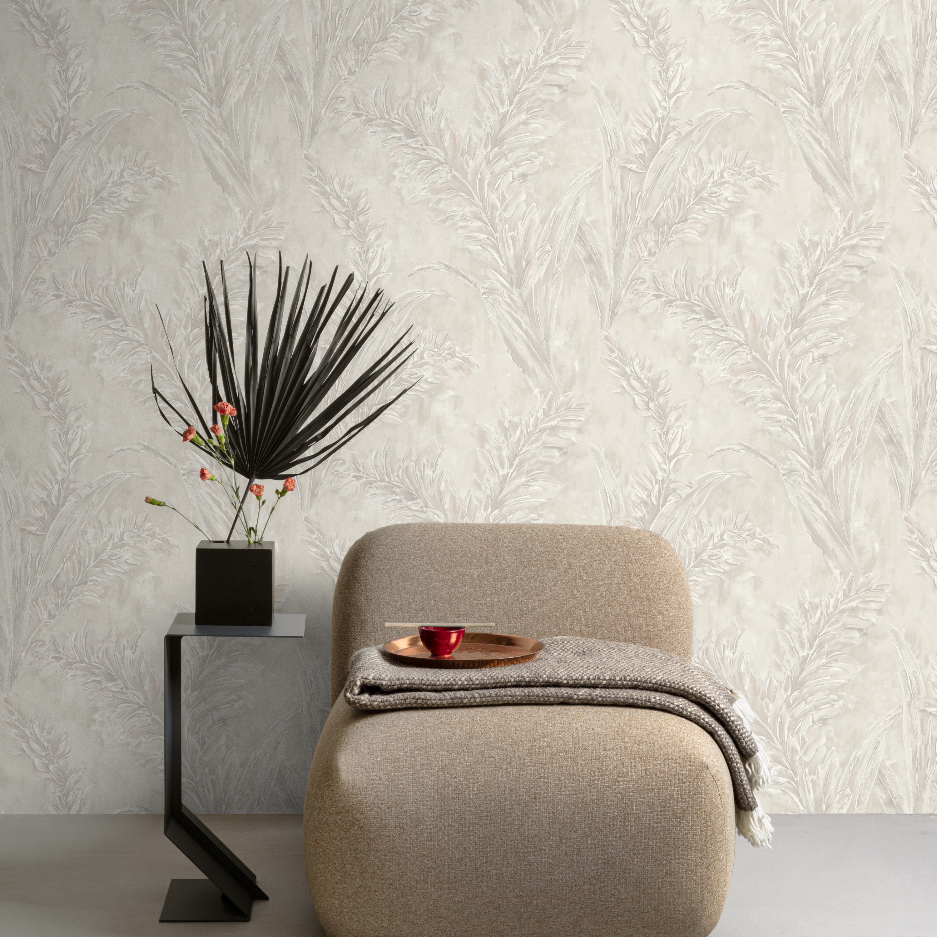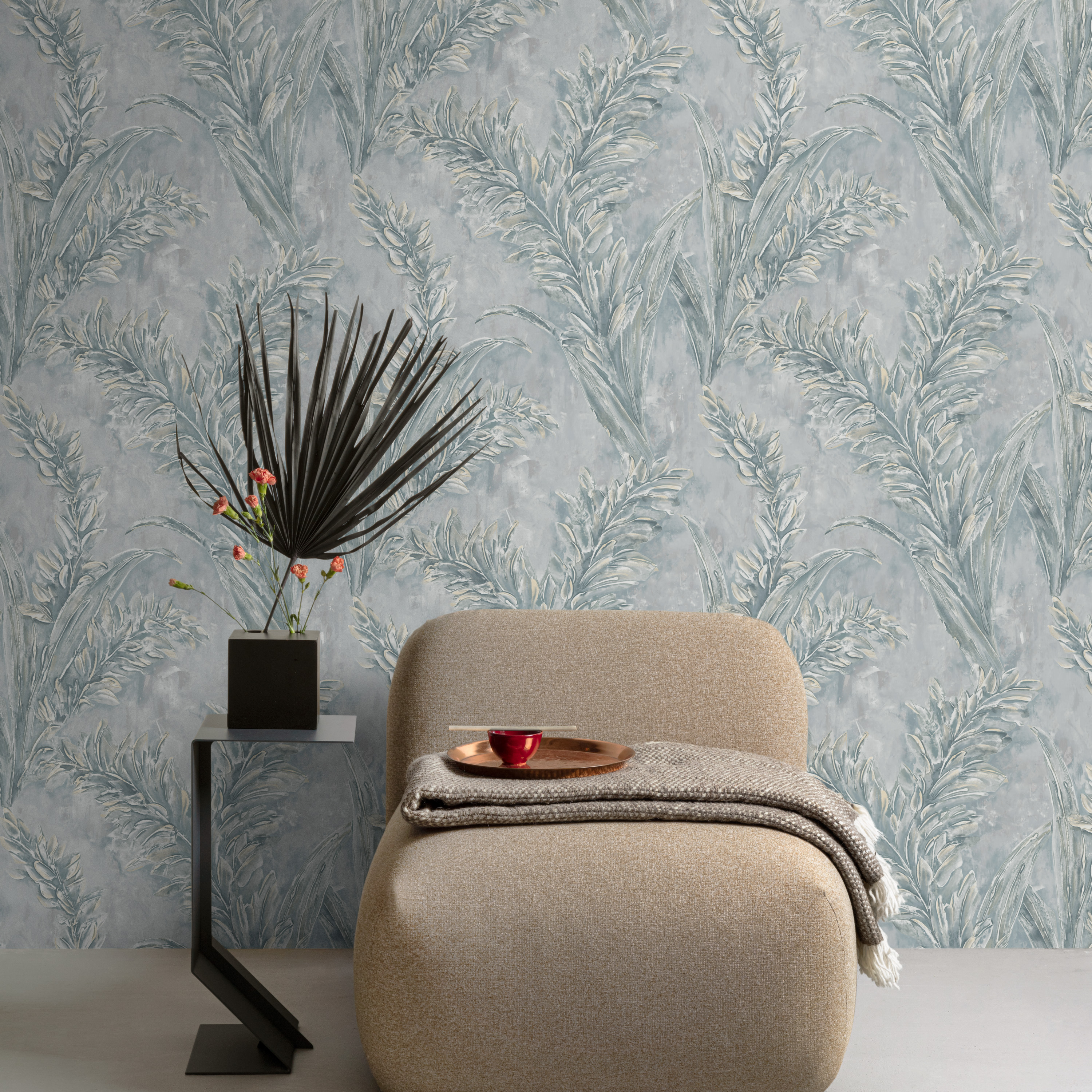 Растительные мотивы, напоминающие пальмовые ветви или листья агавы, ассоциируются с южной природой, вечнозелёной и величественной. Этот рисунок будто говорит о покое, о времени, которое замедлилось, чтобы подарить момент созерцания. Он прекрасно впишется в классические и неоклассические интерьеры, добавив им лёгкий налёт ар-деко или дворцовой сдержанной роскоши.