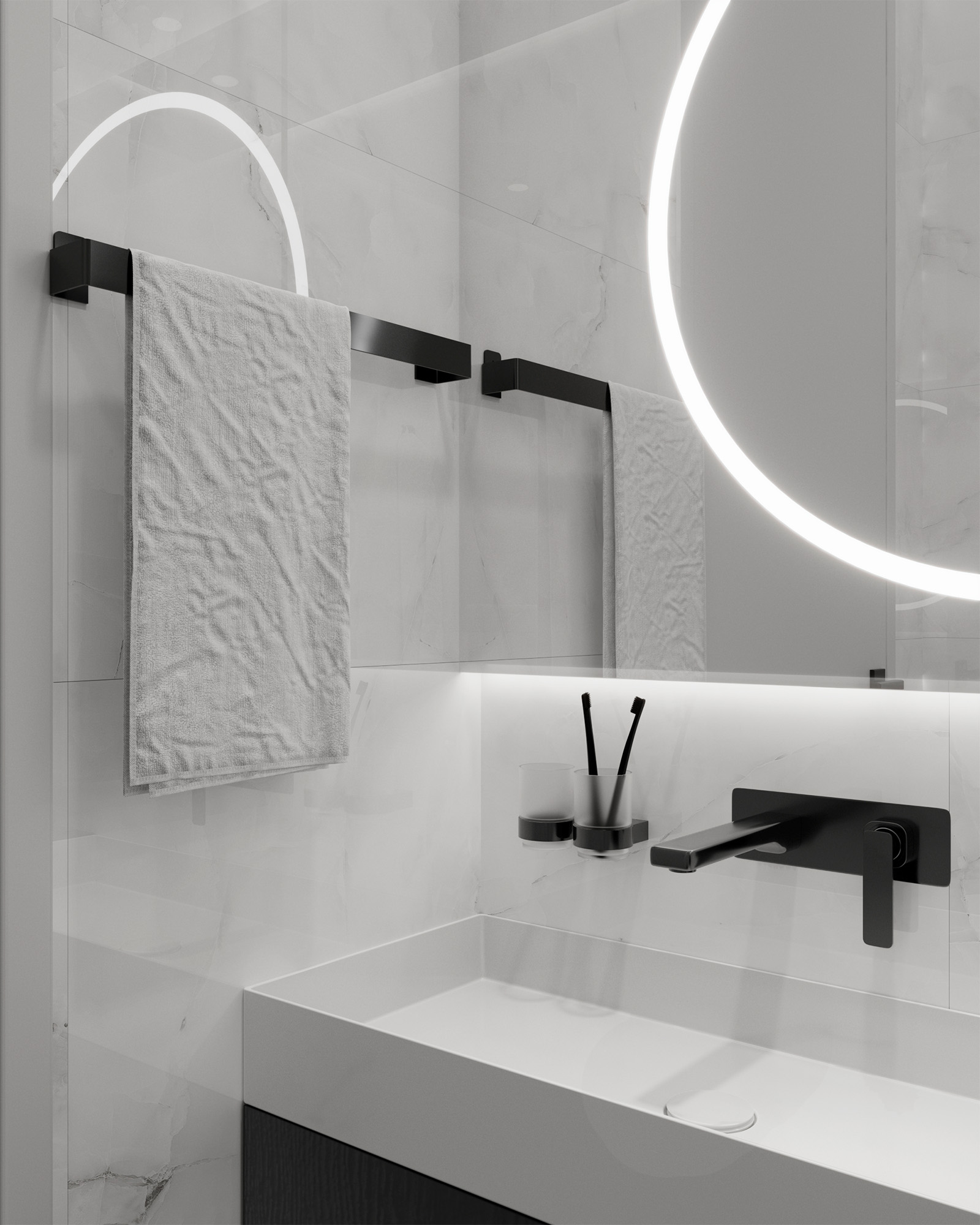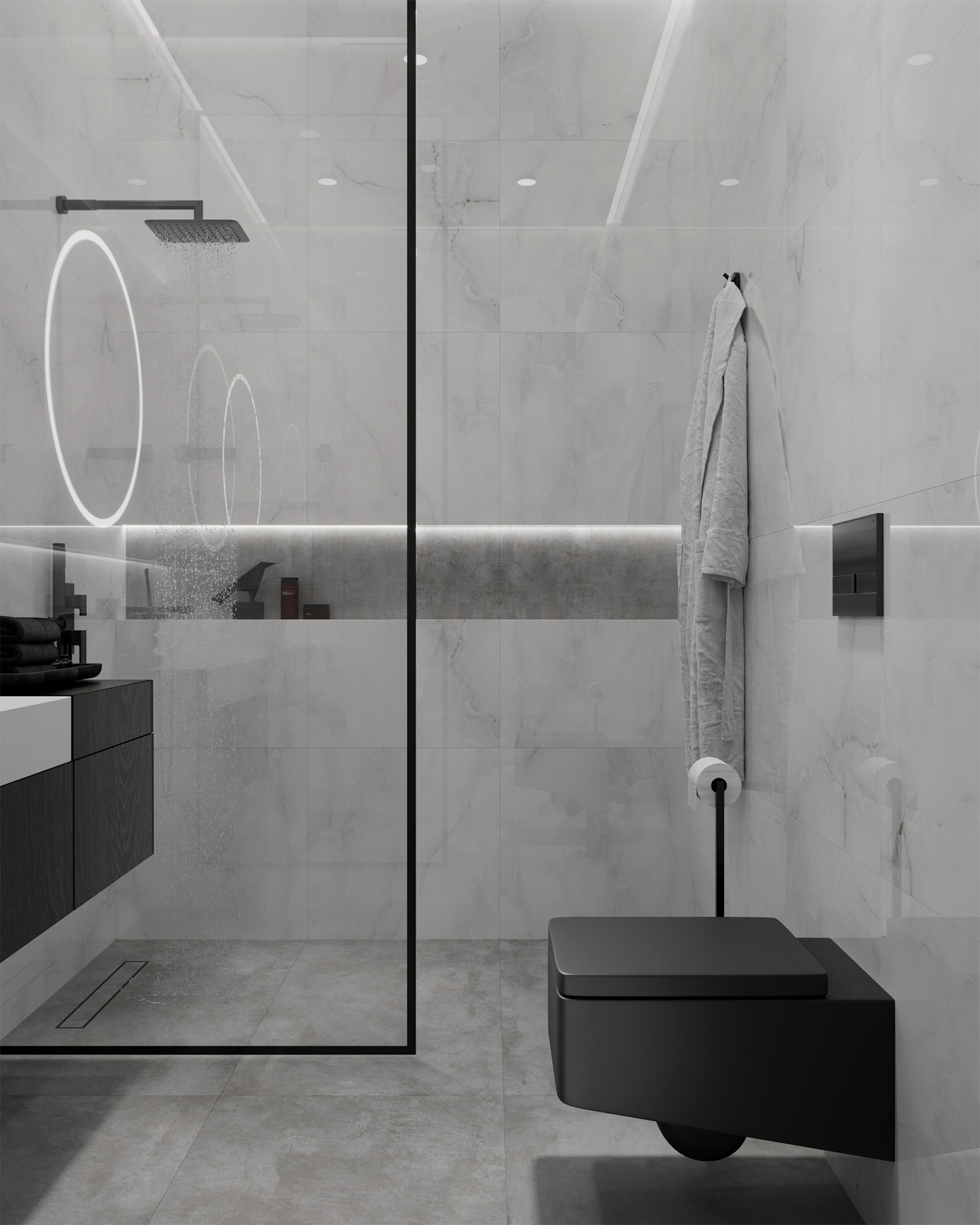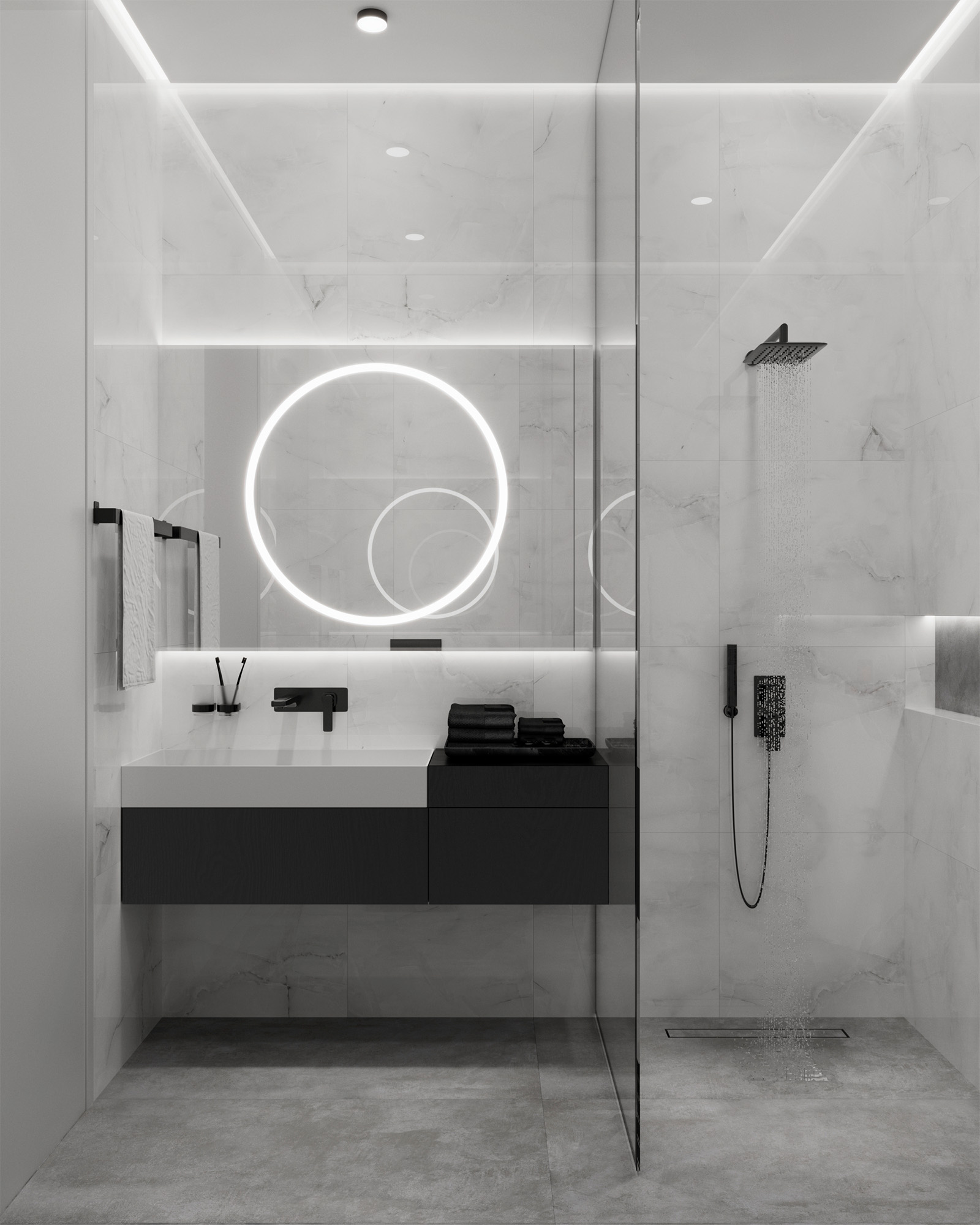 Глянцевая поверхность не только визуально увеличивает пространство, но и позволяет свету играть на ее зеркальной текстуре, создавая завораживающие игры света и тени.