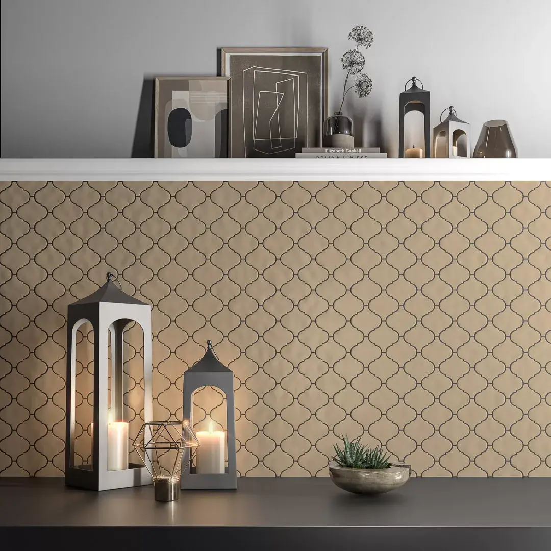 В ассортименте KERAMA MARAZZI арабески появились благодаря коллекции «Испанская фиеста», наполненной разными влияниями — в том числе отголосками мавританской культуры. Восточный колорит ощущается и в Марокко, поэтому неудивительно, что новая коллекция обращается к мозаичной плитке характерной ориентальной формы. Изящный формат арабески в традиционном керамическом прочтении смотрится изысканно и подходит для интерьеров в различных стилях.