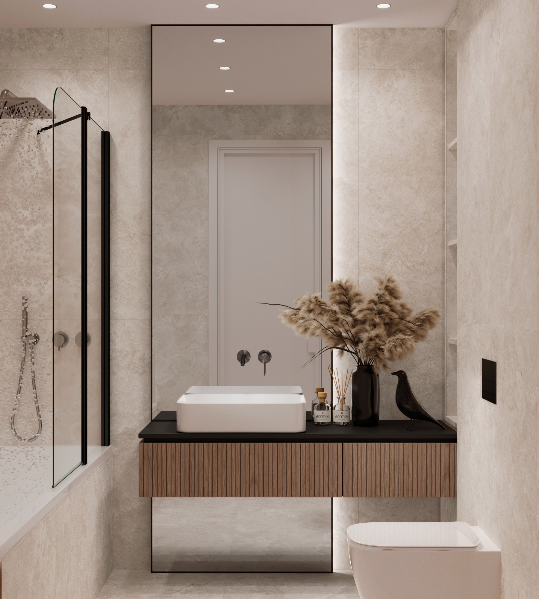 Благодаря матовой поверхности с легкой рельефностью этот материал не только выглядит стильно, но и удобен в уходе. Он прекрасно сочетается с различными отделочными материалами - от теплого дерева до холодного металла, позволяя создавать гармоничные интерьерные композиции.