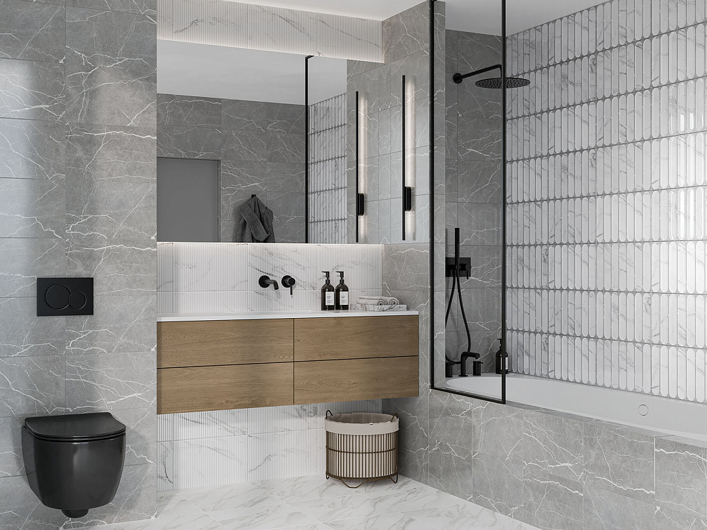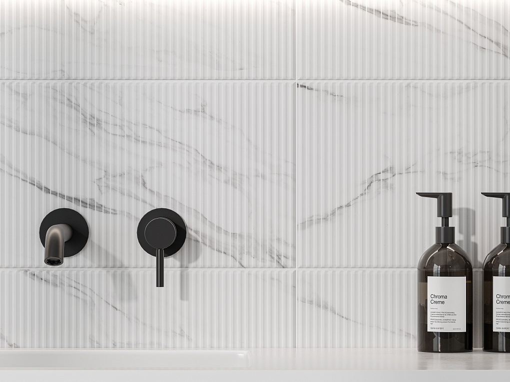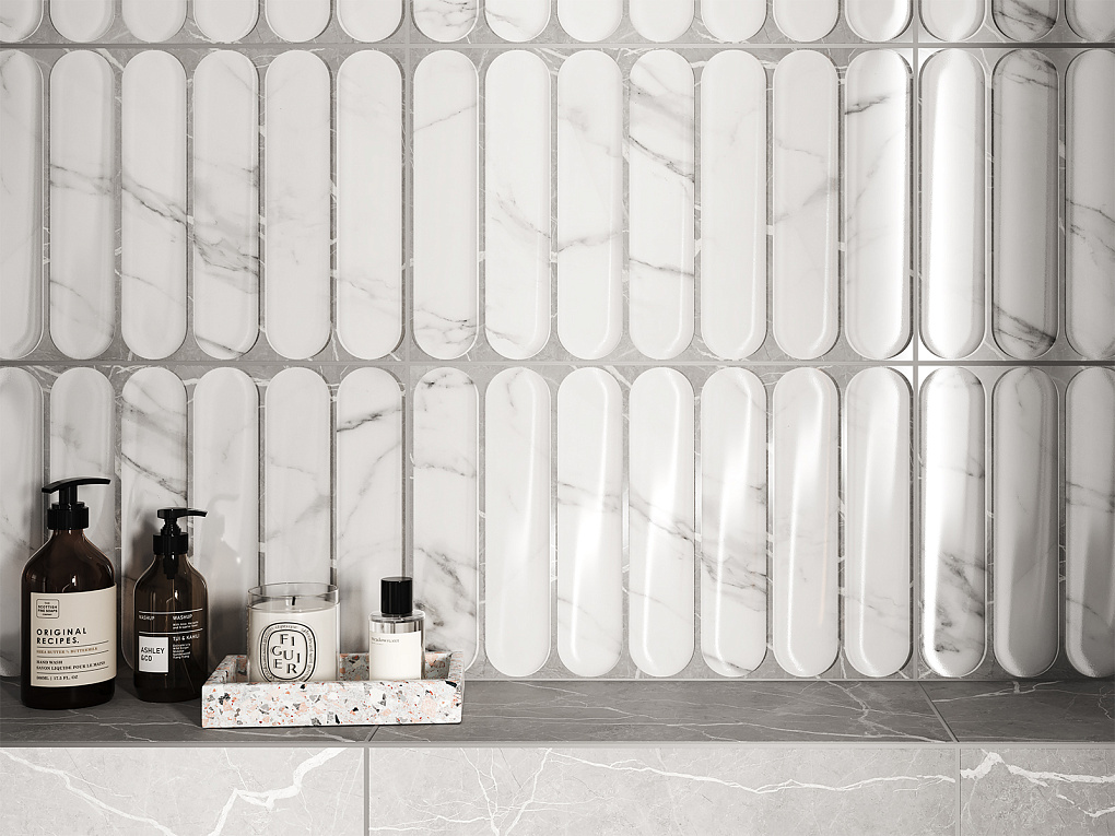 Коллекция «Арко» представляет собой идеальное сочетание античной классики и современного стиля. Название коллекции акцентирует внимание на арочных формах, которые особенно заметны на декоративном фоне. Замкнутая аркообразная геометрия, представленная в двух рельефах – крупном и мелком – напоминает каннелюры, характерные для ионического ордера. Классическую атмосферу подчеркивают базовые глянцевые плиты с текстурой мрамора. Коллекция станет идеальным выбором для тех, кто ценит сочетание классического дизайна с современными тенденциями.
