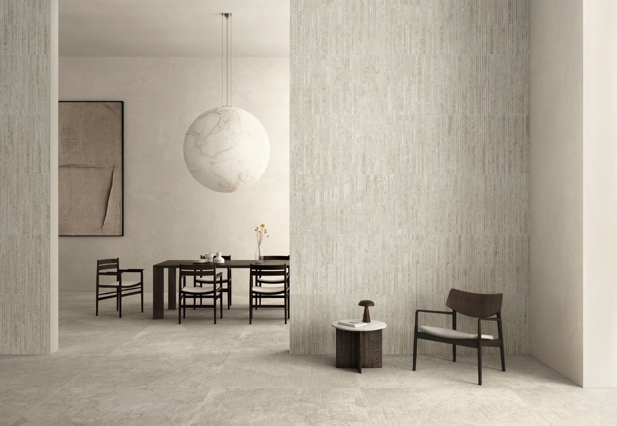 Однако мы хотели выйти за рамки и создать современную поверхность, которая сохраняла бы следы и воспоминания о натуральных материалах, а также включала бы элементы знакомых текстур: процесс синтеза и объединения. Не просто копия, а синтез, то есть продукт изобретения.
