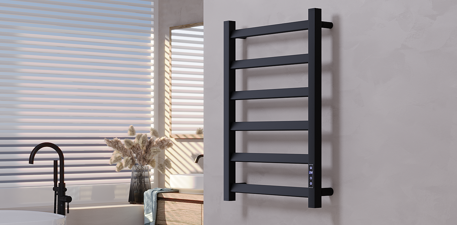 - Цвет полотенцесушителя матовый черный, матовый белый