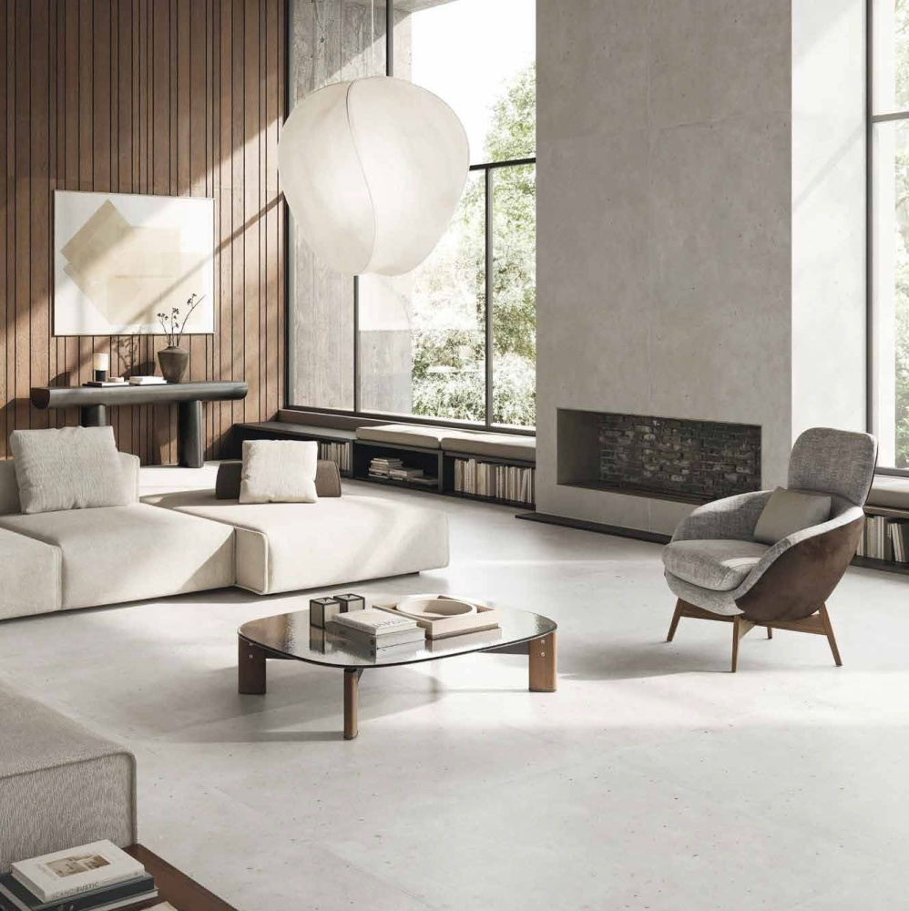 Коллекция керамогранита Авангард от Италон (Avantgarde by Italon) переосмысливает концепцию шлифованного бетона, превращая его в актуальное дизайнерское решение 2025 года. Оригинальные вкрапления различных форм и оттенков придают поверхности динамичность и выразительность, создавая неоднородный фон, который гармонично сочетается с любыми материалами — от изысканного мрамора и теплого дерева до современных стеклоблоков. Эта коллекция воплощает в себе брутальный шарм бетона, обогащенный превосходными техническими характеристиками керамогранита.