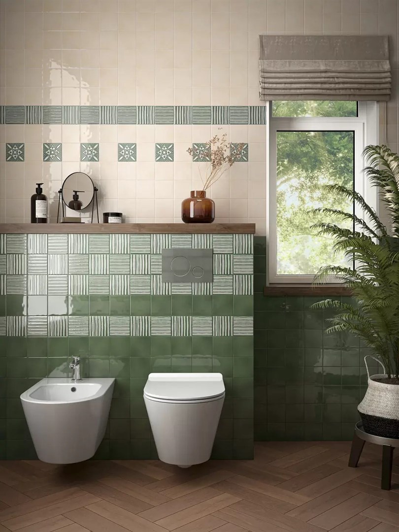 В коллекции представлены насыщенные зелёный и бирюзовый цвета, которые прекрасно подойдут для интерьеров в современном или средиземноморском стиле. Более нейтральные бежевые оттенки органично впишутся в спокойные и сдержанные пространства – от минималистичных ванных комнат до уютных интерьеров в духе неоклассики или прованса.