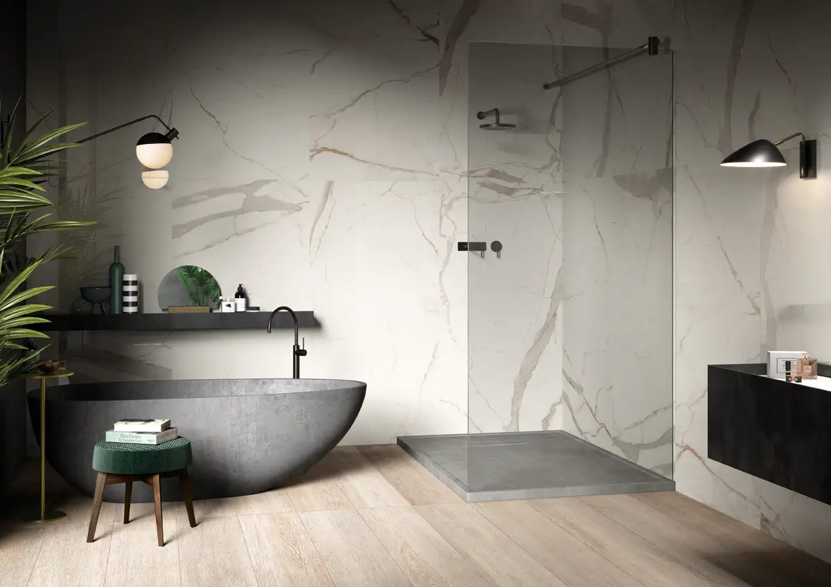 Проект Bianco представлен в новом формате 90x180 см и в классическом формате 90x90 см, 45x90 см; в двух версиях поверхности: первая - натуральная, с неоднородной поверхностью, вторая - лаппатированная глянцевая. Самая что ни на есть настоящая дань классическому мрамору.