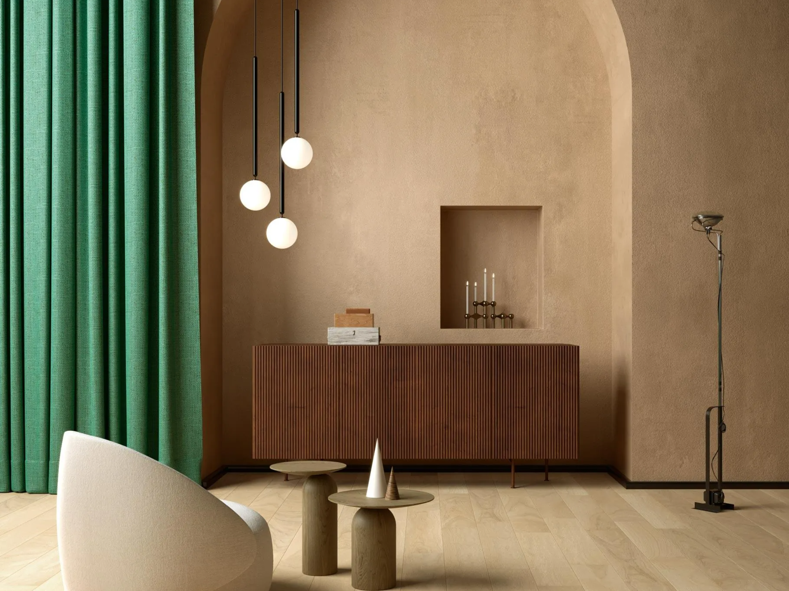Керамогранит Bormio доступен в формате 20x120 и трёх природных оттенках — Сэнд, Хани и Пэппер, каждый из которых подчеркивает характер материала по-своему.