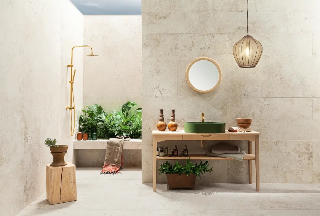Напольная плитка - основа коллекции Breccia Fara. Основные размеры: 59.8x119.8, 119.8x119.8, 119.8x274.8 см.