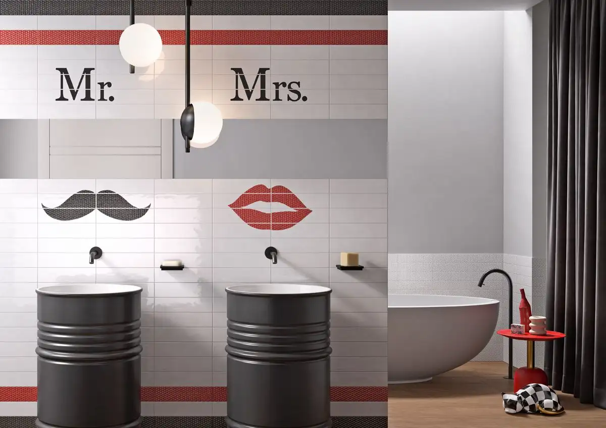 Всем известно, что творчество не имеет границ, и вдохновение может рождаться из чего угодно - из пузырьков воздуха, воспоминаний о детстве с огромными пузырями из жвачки и даже из пузырчатой упаковки! Все это есть в коллекции настенной плитки BUBBLE от ведущей итальянской фабрики Imola. Эта коллекция пользуется заслуженным успехом у дизайнеров. Давайте посмотрим почему. Нужен фартук на кухню - используйте классическое цветовое сочетание черной, белой и красной плитки двойного обжига в формате 7,5x30 см, дополните его золотистым рельефным декором и панно с изображение чайных трав на черном фоне. Про любителей кофе дизайнеры фабрики тоже не забыли и подготовили панно Coffee Time в формате 30х60 которое прекрасно подойдет к бежевой плитке. Нужна плитка для кафе? Оба варианта будет отлично смотреться в маленькой уютной чайной или кофейне. Также в коллекции BUBBLE есть керамическая плитка для отделки парикмахерских, ванных комнат и уборных. Обратите внимание на панно Mr и Mrs, дополните его абстрактной композицией и серебристым декором, поиграйте с цветами и фактурами - и Ваш интерьер будет просто неповторим!