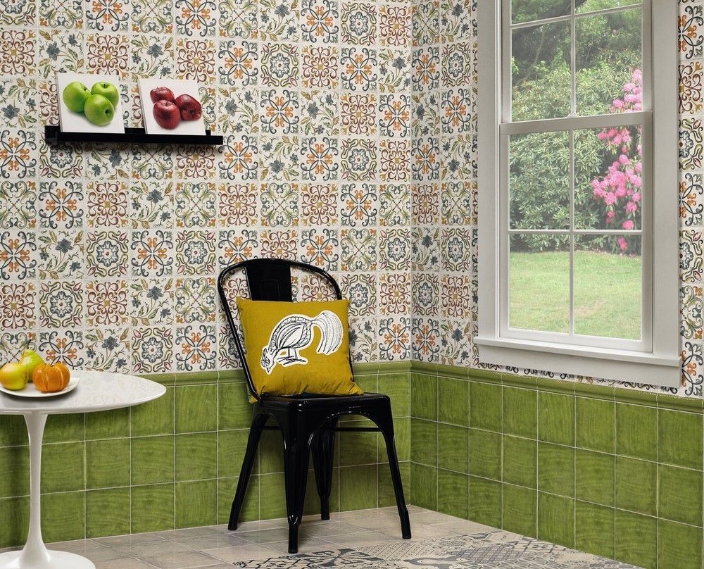 Плитка mainzu отличается интересной стилистикой: цветами, листьями, геральдическими символами и геометрическими узорами - в коллекции очень много декоров. Все мотивы, характерные для средиземноморского стиля, поэтому показаны на белом фоне в оттенках синего, зеленого, кофейного и золотого.