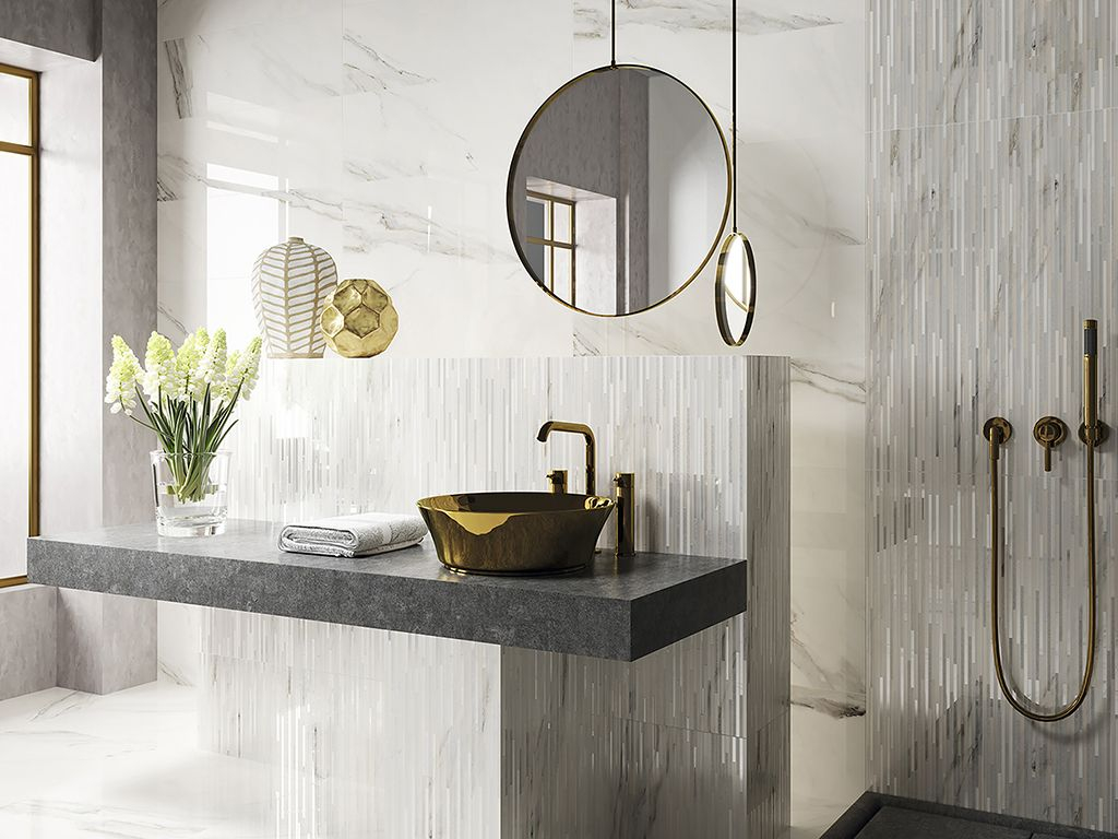 Коллекция Dune CALACATTA с рисунком мрамор, под мрамор — отличный выбор для дизайна и отделки помещений. Элементы имеют геометрическую форму квадрат, прямоугольник. Материал может быть использован для ванной, для гостиной, для общественных помещений имеющих стиль классический, современный.