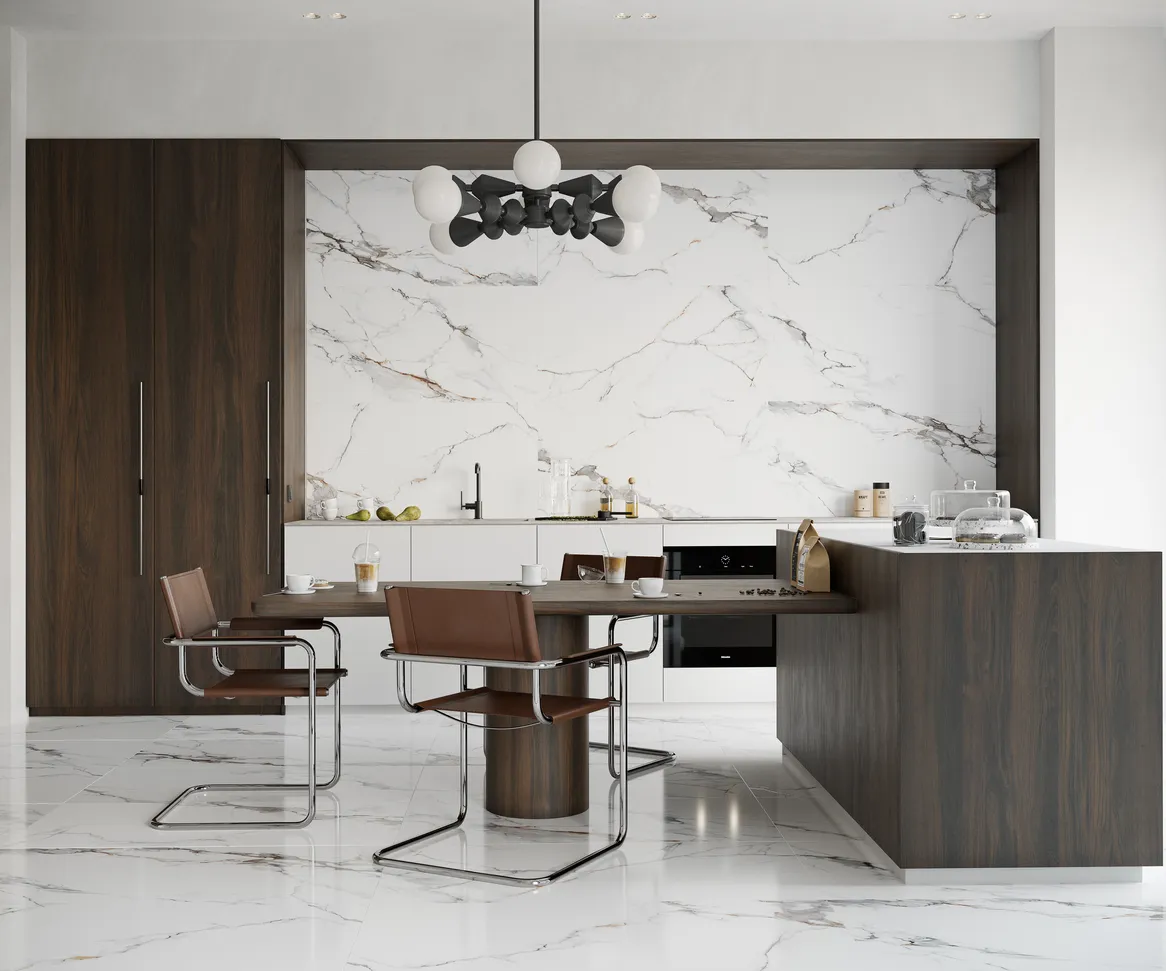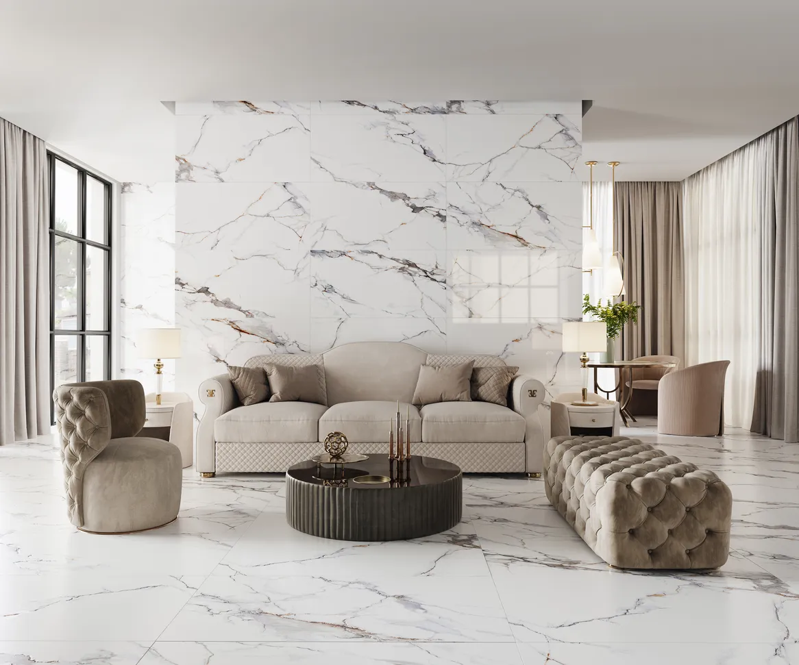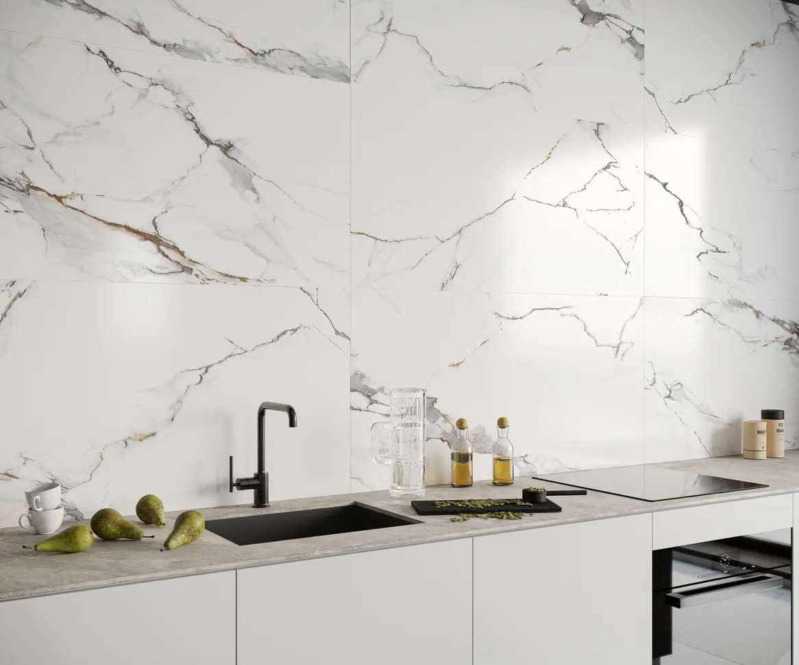 Еще одна новинка осени 2022 в зарекомендовавшей себя безупречным качеством серии Dogma® Project Antibacterial - коллекция Calacatta Macchia Vecchia (Калакатта Маккья Веккья). Плиты имеют кристально белую поверхность, контрастирующую со сложным рисунком, состоящим из пепельных и золотых прожилок, с различными оттенками этих цветов. Для создания коллекции дизайнеры Dogma® выбрали лучшие образцы мрамора и добились идеальной гармонии теплых и холодных тонов. Коллекция представлена двумя видами поверхности: «Levigato»- идеально гладкая зеркальная поверхность и характерная "глубина цвета"; «Natural» - легкий бархатистый блеск, подчеркивающий индивидуальность мрамора с мягким рельефом, повторяющим рисунок на поверхности. Коллекция Calacatta Macchia Vecchia входит в состав серии Dogma® PROJECT ANTIBACTERIAL (DPA). Все изделия этой серии обладают антибактериальными свойствами, соответствуют требованиям норматива ISO 22196:2011.