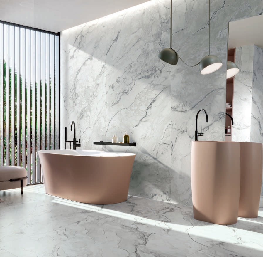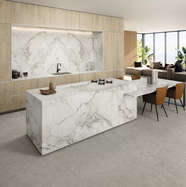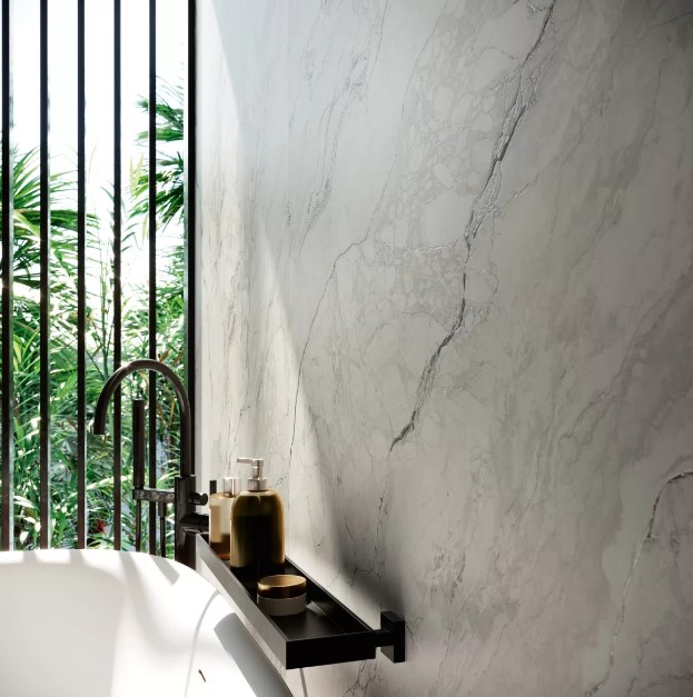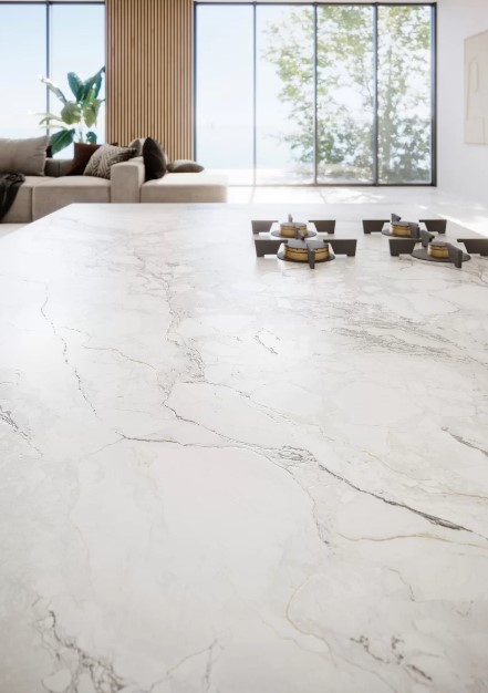 Серия Camouflage от Grespania черпает свое вдохновение из мрамора, добываемого на севере Бразилии. Она представляет собой белую плиту с серыми и черными прожилками и легкими золотистыми штрихами. Camouflage доступен в двух вариантах отделки: Satin, матовая поверхность с легкой глазурью, гладкая на ощупь, и Polish, высокоглянцевая отделка, которая придает эксклюзивность. Полированная отделка использует технологию CarvedTechnology, которая подчеркивает естественные детали. Мрамор, доступный в Coverlam и Coverlam Top, подходит для кухонных столешниц, а также для внутренних стен, пола и мебельной плитки.