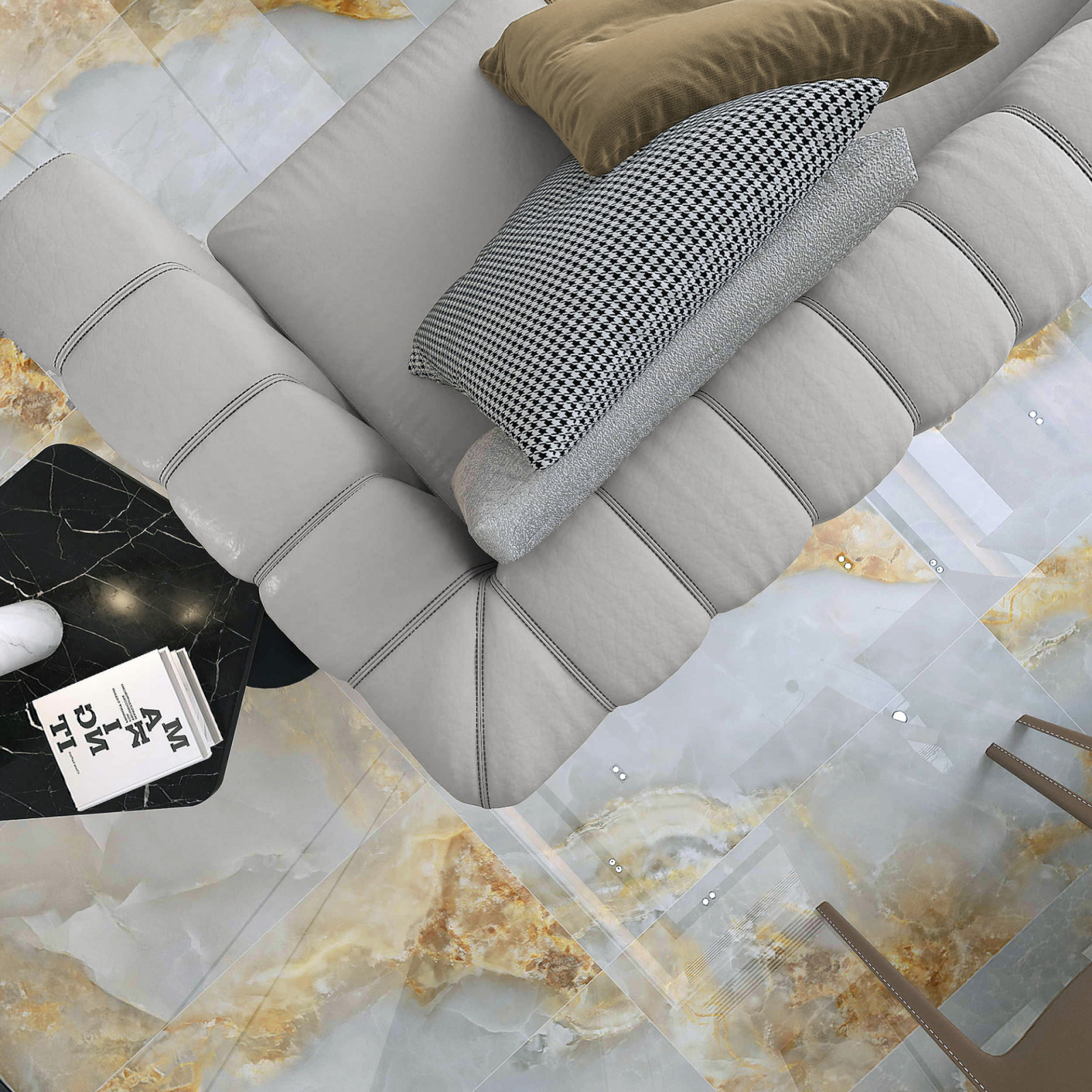 Завораживающая коллекция Cometa очаровывает с первого взгляда. Нежные переливы на небесно-голубом фоне, в которые вплетены блестящие золотые вкрапления, создают атмосферу неописуемой роскоши. Cometa воссоздает текстуру оникса, позволяя интерьеру приобрести характер и индивидуальность. Полированную поверхность деликатно подчеркивает эффект бриллиантового блеска, создавая ощущение шика и изысканности. Керамогранит Cometa идеально подходит как для создания стильной базы интерьера, так и для эффектного зонирования.