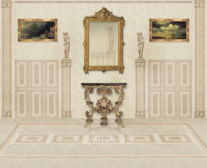 Europa Ceramica Crema Marfil – коллекция настенной керамической плитки, стилизованная под природный мрамор. Она выполнена в бежевом цвете, красиво смотрится как в современных, так и в классических интерьерах ванных комнат. Материал имеет глянцевую поверхность. На фото в каталоге керамической плитки Europa Ceramica Crema Marfil вы видите многочисленные декоративные элементы, представленные вставками, бордюрами и панно. На них нанесен орнамент, а также различные изображения.