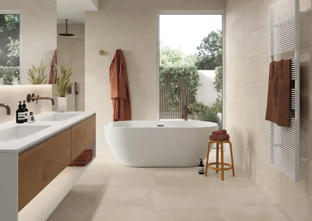 Коллекция Crew Umami - керамика с эффектом терракоты, с ультраматовой поверхностью, гладкой и приятной на ощупь, доступна в трех различных оттенках (миндаль, бежевый и серо-коричневый).