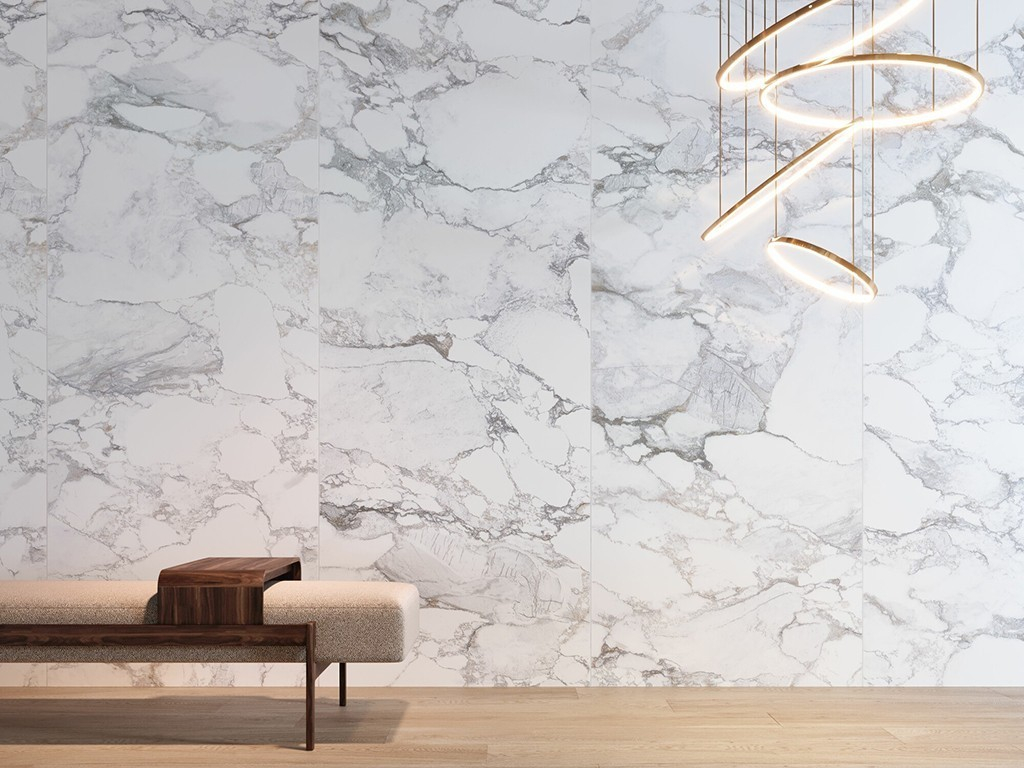 Выпускается в форматах 100x275 см, 100x180 см, 100x100 см, 75,5x151 см и 60x120 см, с видами отделки Premium Polished Shimmer, Shaped, Polished и Natural.