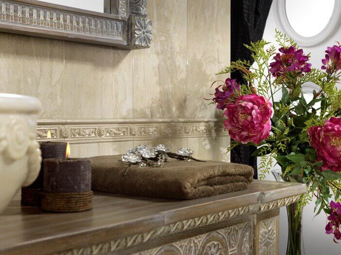 Daino Reale Navarti - представлена в спокойных тонах, которые могут использоваться для воплощения идей декорирования интерьера в любом современном стиле. За основу коллекции был выбран однотонный цвет и текстура камня. Современные технологии в точности передали все особенности каменной поверхности, поры, наличие включений, зернистость, неравномерный тон, лоснящиеся и матовые участки.