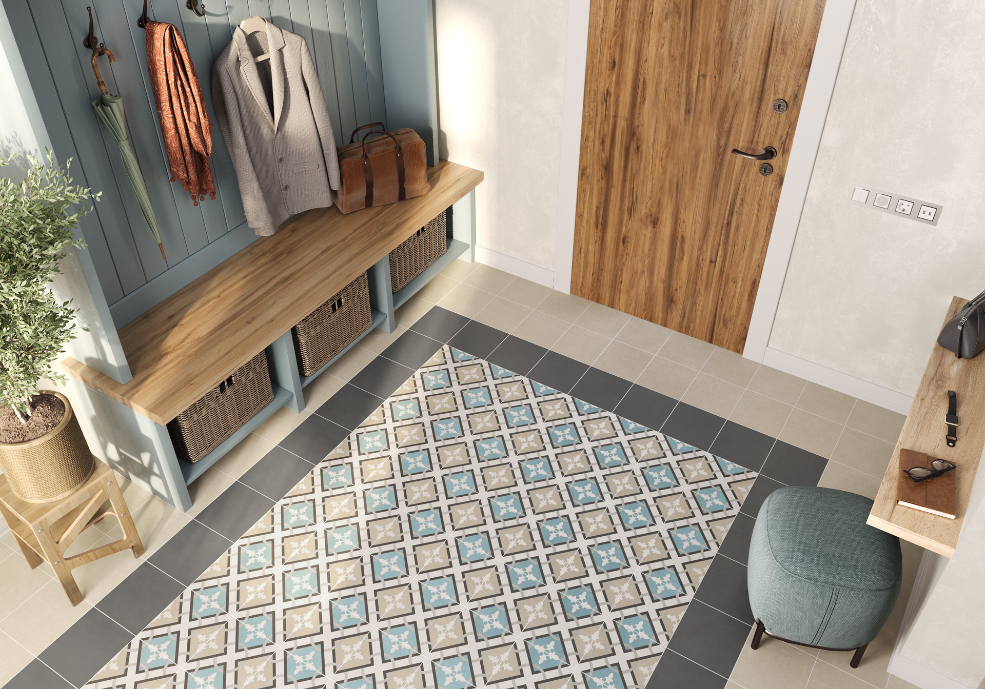 Мода на плитки классического размера актуальна как никогда, ведь основным трендом этого года является сочетание небольших плиток с крупноформатным керамогранитом или альтернативным сочетанием с текстурой древесины. Если раньше пэчворк использовался, как правило, в ретроинтерьерах, то сейчас популярность плиток в этом стиле с каждым годом растет. Дизайн с рисунком пэчворк используется в интерьере ванной комнаты, кухни, прихожей, лоджии, им выделяют и акцентируют пространство, он эффектно смотрится на террасе частного дома, в зоне барбекю или в общественном пространстве. Такой дизайн универсален, так как он гармонично впишется в любой современный интерьер. Также дизайнеры любят небольшой формат плиток, ведь с ним можно использовать цветную затирку и создать уникальное пространство. Поэтому дизайнерами бренда NewTrend была создана коллекция матового керамогранита Design Art в формате 200x200. Она включает в себя 40 артикулов, из них: 9 базовых плиток с текстурой микроцемент, 4 артикула с текстурой мрамора, 23 артикула декоративного массива с узором печворк, которые складываются в единый узор и 4 артикула в виде разнообразных миксов с узорами. Mix 1 и 2 реализованы на базе цвета керамогранита Light grey, Mix 3 и 4 — на базе Ivory. Самостоятельные пэчворки имеют по одной основной базе компаньона, а также несколько акцентных вариантов, которые присутствуют в узоре пэчворка. Для каждого артикула с принтом мы предлагаем варианты сочетаний плиток друг с другом, но вы сами можете создать свою уникальную комбинацию цветов и принтов, ведь эта коллекция создана для интерьерного творчества.