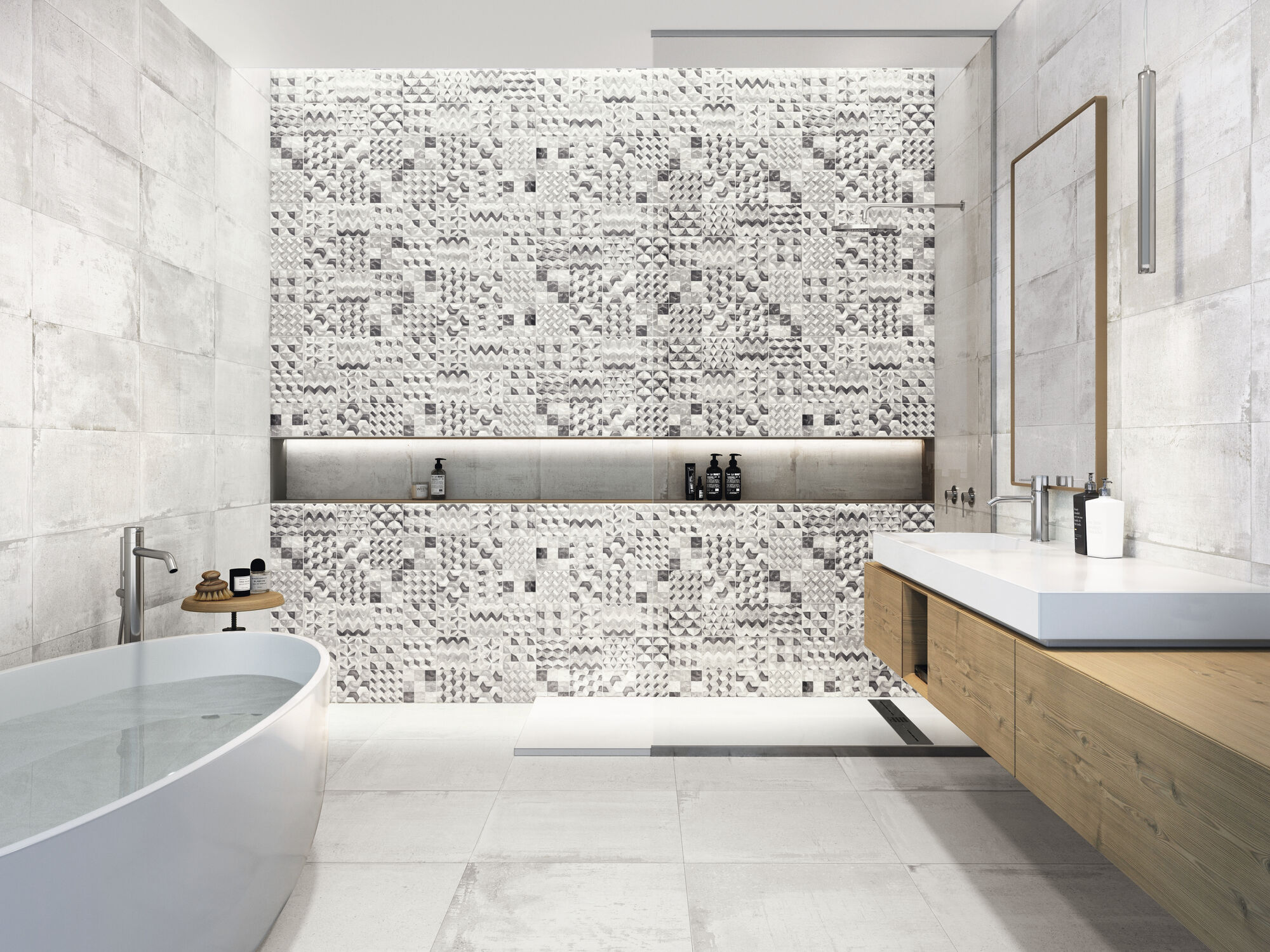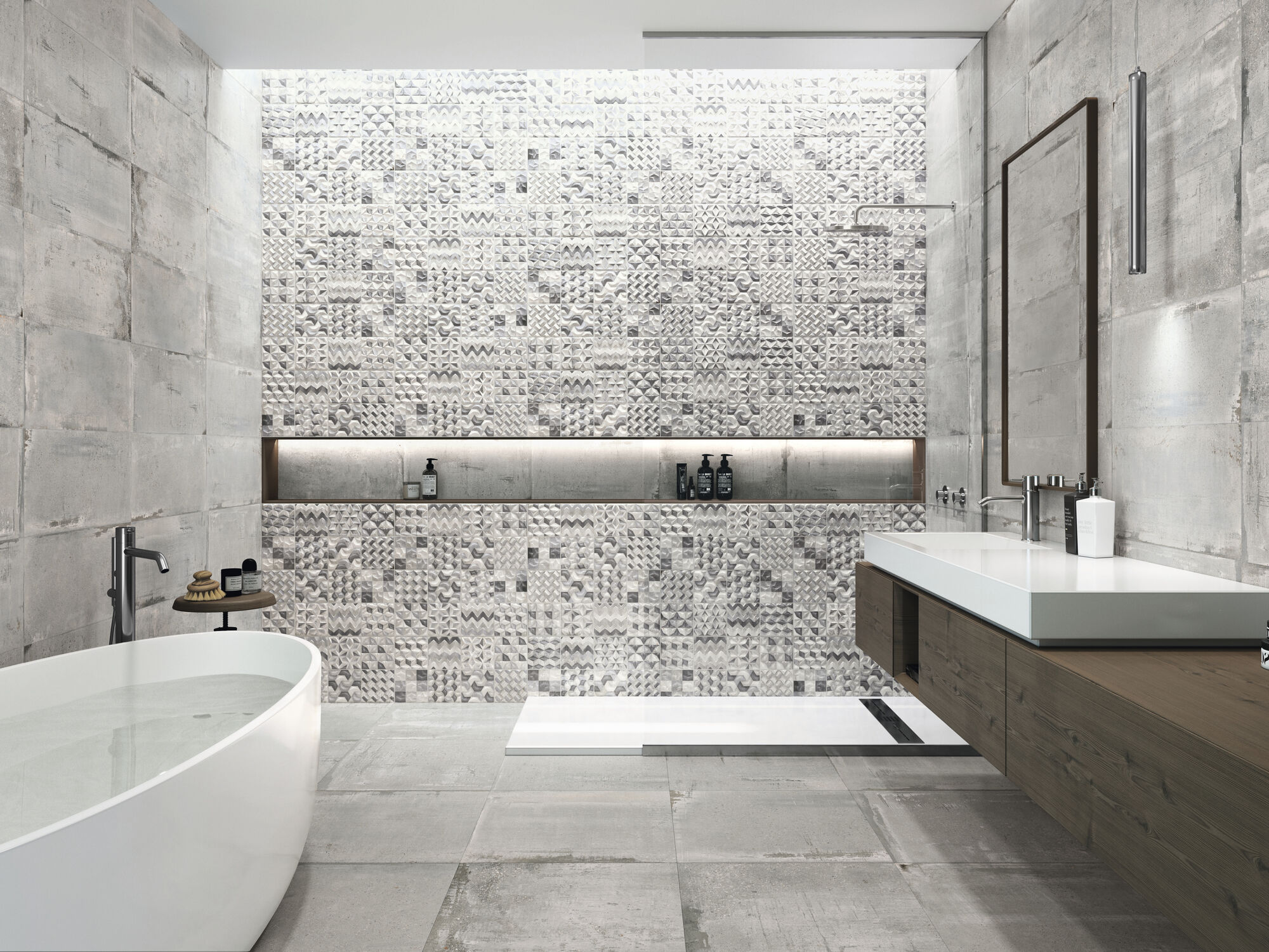 Базовая фактура Detroit воспроизводит неоднородную поверхность камня с его структурным шелушением, размытыми цветовыми переходами и наличием небольших прожилок. Керамогранит Detroit станет отличной фоновой основой в любом современном интерьере: цветовая гамма серии гармонично вписывается в классическую, неоклассическую и эко - концепции, подчеркивает красоту фактур других материалов и задает трендовый спокойный фон. Универсальность формата 60х120 см позволяет укладку керамогранита и на полу, и на стенах, с минимальными стыками, благодаря ректифицированной кромке.