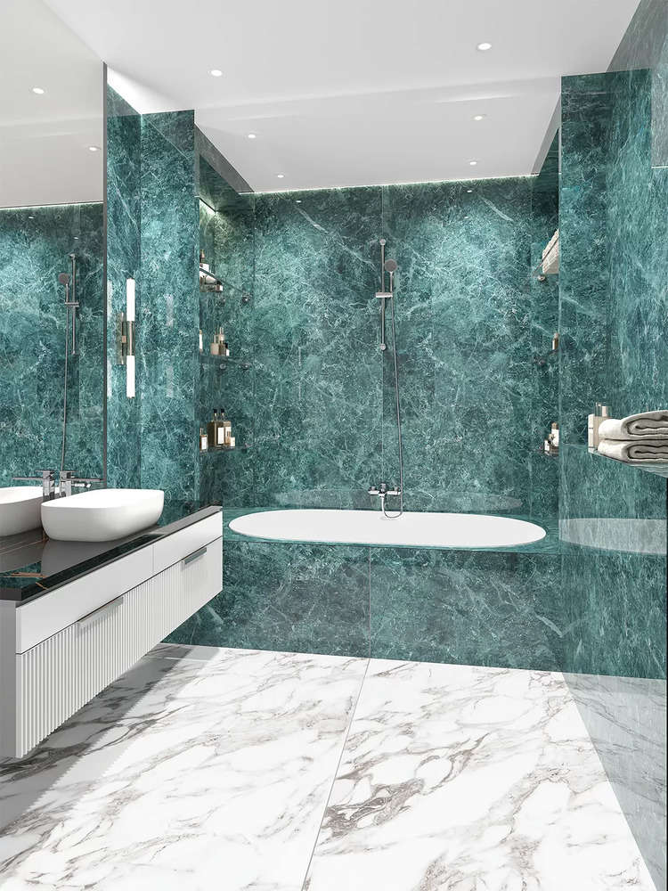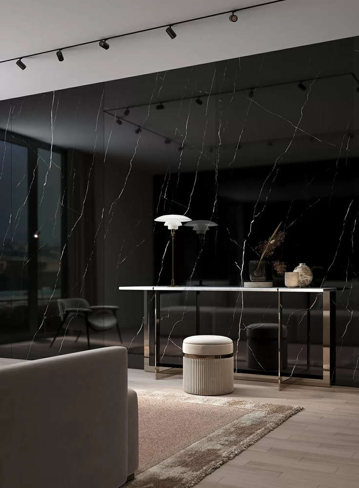 DOUBLE POLISHED – коллекция керамогранита с двойной полировкой, формата 2800х1200x6 мм. Эта коллекция позволяет создать бесшовные поверхности, сделав пространство полов или стен безграничным. Керамогранит в данном формате идеально подходит для изготовления кухонных столешниц, обеденных столов, офисной мебели, прикроватных и туалетных столиков, столешниц и мебели для ванных комнат, облицовки межкомнатных дверей.