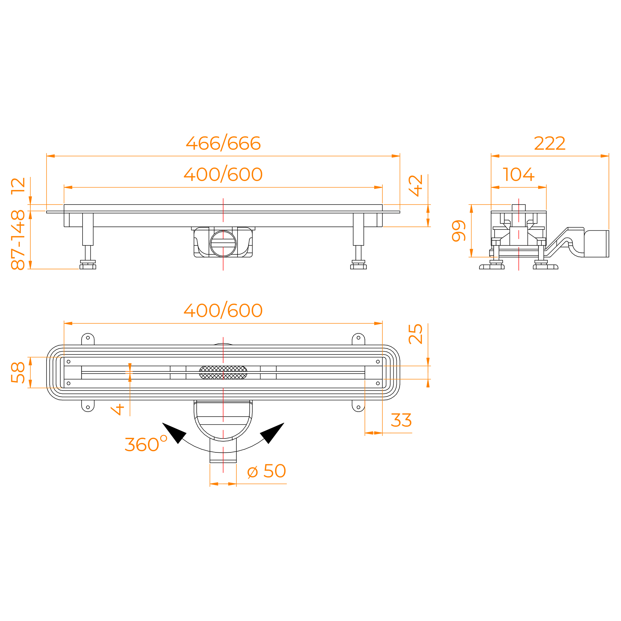 Душевой трап RGW SDR-56 (щелевой) Диаметр слива: 50 мм Размер трапа: 400;600 мм Форма трапа: Линейный/щелевой Цвет решетки трапа: Матовый хром Щелевой жёлоб из нержавеющей стали AISI 304 Лоток из высокопрочного ABS-пластика Пропускная способность: 32 л/мин. Сухой+гидро затвор – 100% защита от неприятных запахов Съёмный фильтр для улавливания волос - быстрый доступ с верху для очистки Поворотный сифон для подключения с любой стороны Две усиленные опоры с регулировкой высоты Установка в один уровень с плиткой Гидроизоляционная лента в комплекте Серия: SDR Страна производитель: Россия / Германия Гарантия: 3 года Описание Душевой трап – это сантехническое изделие, созданное для отведения воды из зоны, где находится душевое пространство, выложенное керамической плиткой или мозаикой.