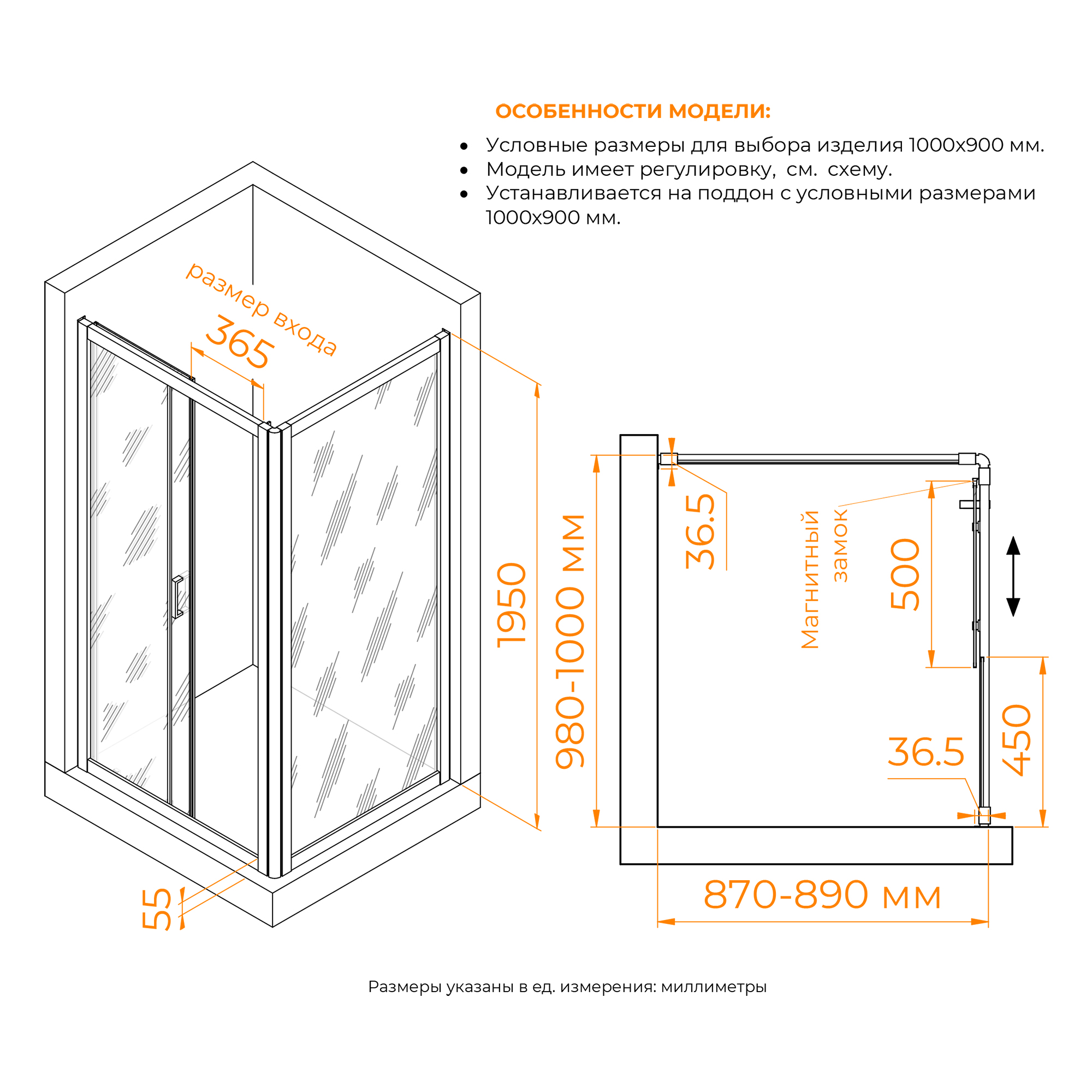 - Форма поддона прямоугольная