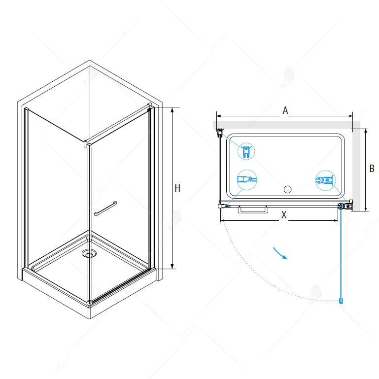Душевой уголок RGW PA-48 состоит из RGW PA-03 Хром и боковой панели RGW Z-050-1 и верхнего держателя. Петля с функцией подъема двери. В комплекте нижняя пороговая планка. Трап или поддон приобретается отдельно.