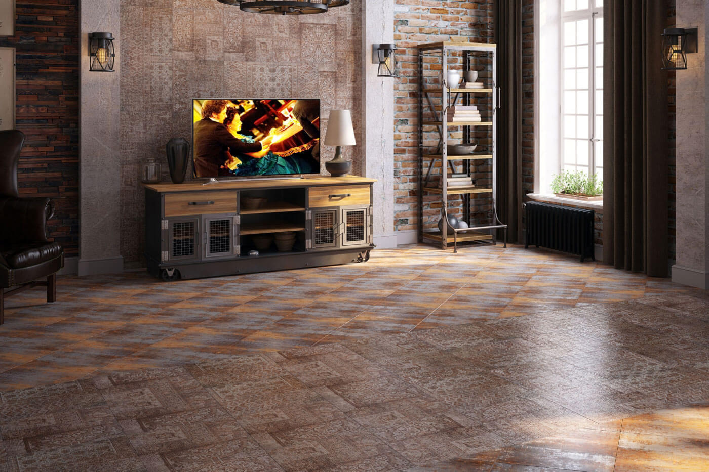 В коллекции Феррум Лофт сплетается история и современность. Словно нити таинственного гобелена времени, проступают на керамической плитке фрагменты старинных рисунков. На серой поверхности бетона вспыхивают прожилки меди. Уникальное покрытие из металлизированной глазури превращает обычный керамогранит в загадочный материал, отмеченный патиной времени. Коллекция великолепно подходит для любителей суровой эстетики стиля лофт и ценителей тонкой эклектики. Актуальная и смелая, коллекция Феррум Лофт поможет придать любому интерьеру модное звучание и оригинальность. Плитка Феррум Лофт имеет матовую поверхность.
