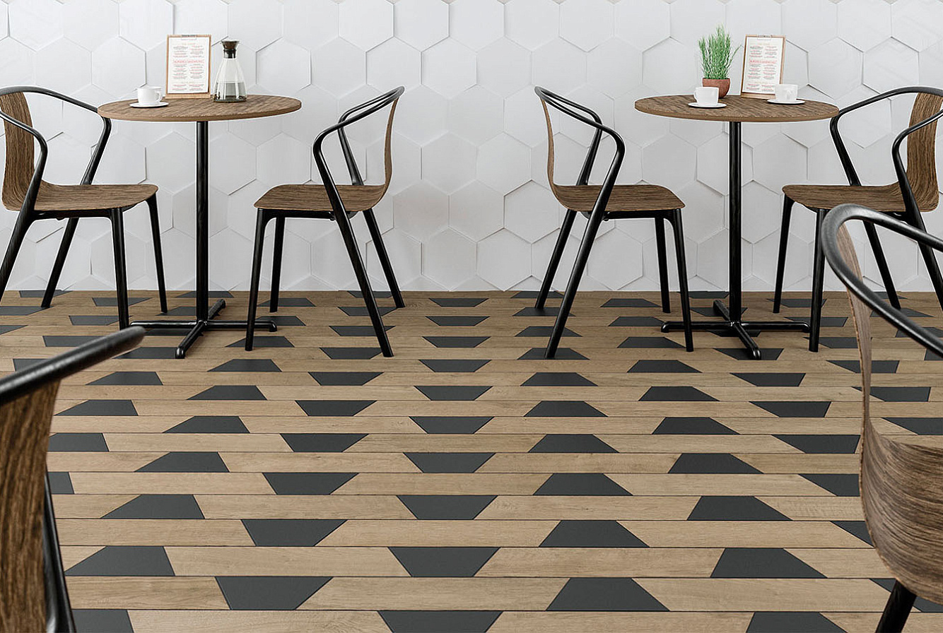 Коллекция WOW FLOOR TILES / ВАУ ФЛОР ТАЙЛЗ представлена керамогранитом в трех спокойных цветах в нескольких форматах: Trapezium 10x23 см, Hexa 20x23 см, Triangle 20x23 см, Chevron 10x52 см.