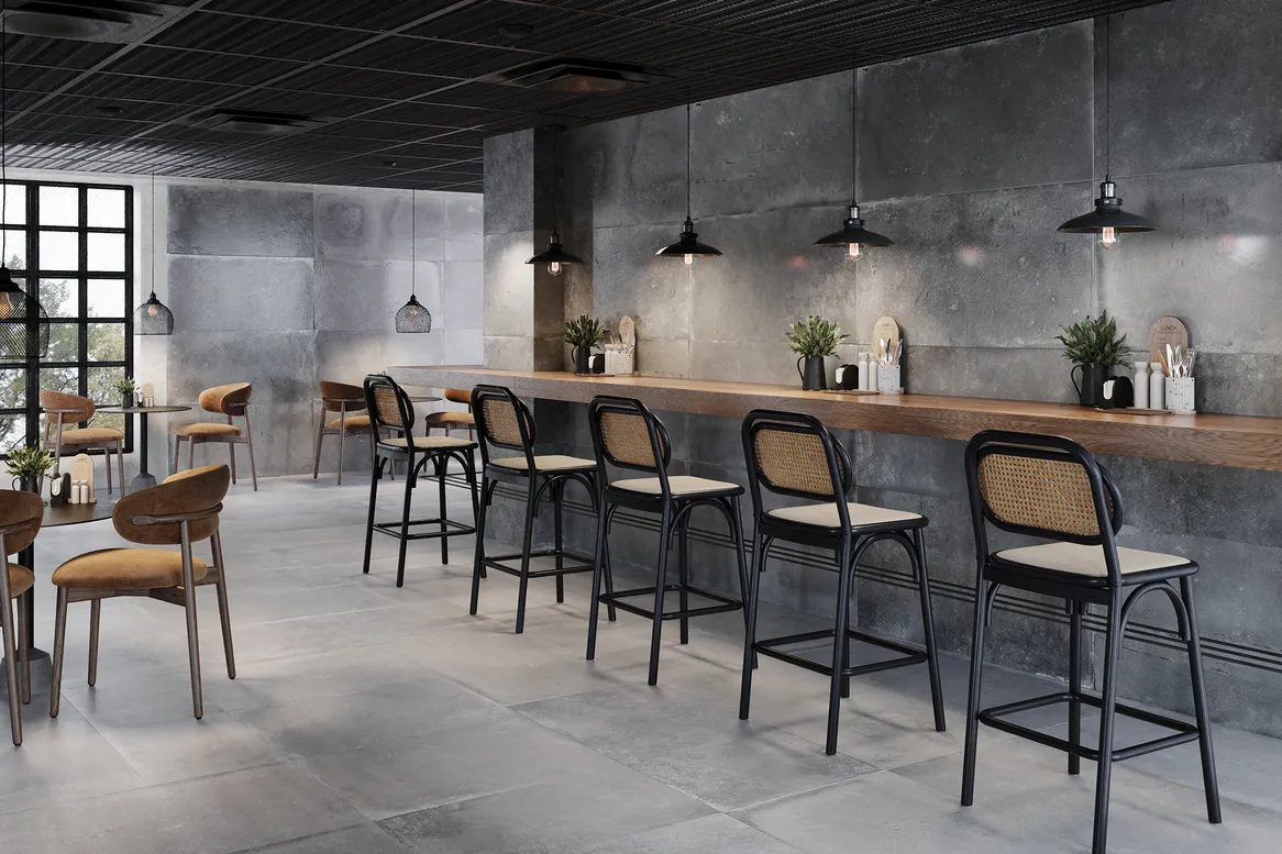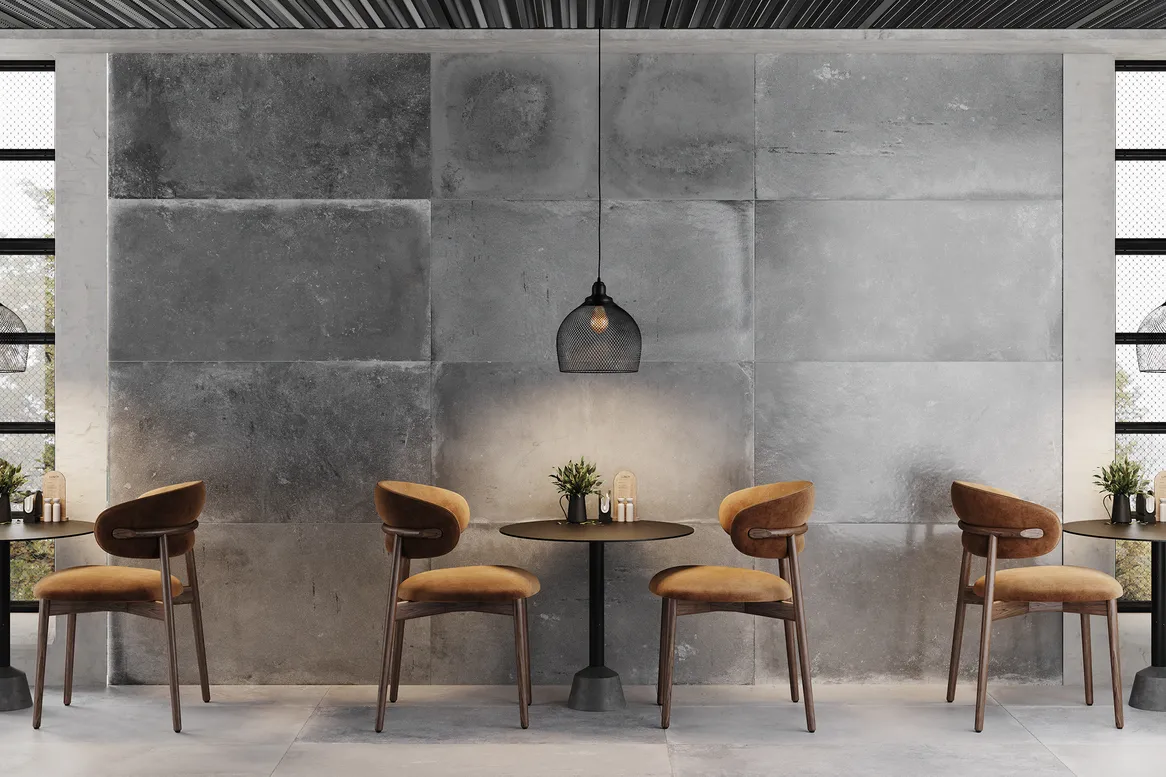 Коллекция Garage также доступна в исполнении Silk Natural, которая придает ей эффект естественно состаренного металла. На поверхности плит имеется едва заметный рельеф, который добавляет оригинальности каждой отдельной плите, выделяя ее среди массового серийного продукта.