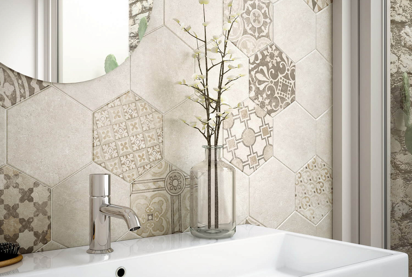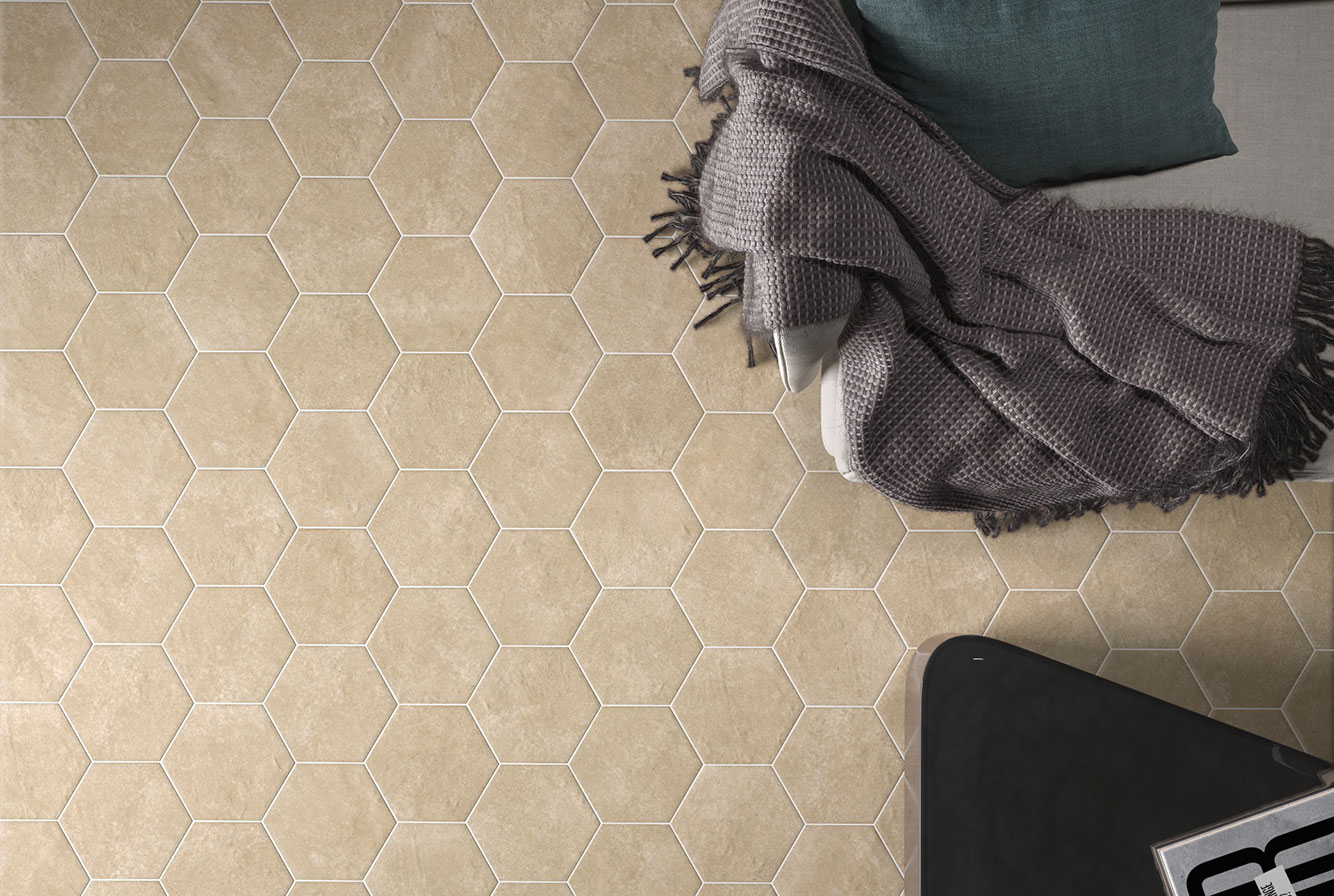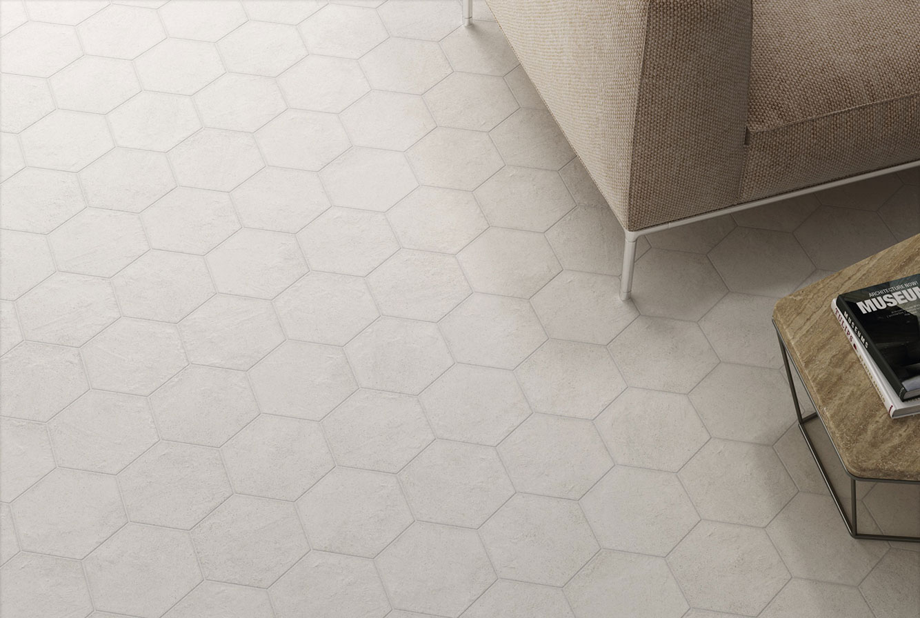 Керамогранит EQUIPE HEXATILE CEMENT /Экипе Гексатайл Цемент/ представлен линейкой фонового однотонного керамогранита и декоративных элементов с различным орнаментом. Выполненный в формате 17,5х20 см, в шести базовых оттенках – White, Mink, Mud, Sand, Grey, Black керамогранит обладает формой, напоминающей пчелиные соты и матовой поверхностью, имитирующей цемент. Может использоваться как для напольного покрытия, так и для облицовки стен. Благодаря пастельным, отлично сочетающимся друг с другом оттенкам, коллекция Экипе Эксатил Цемент позволяет создавать множество различных комбинаций.
