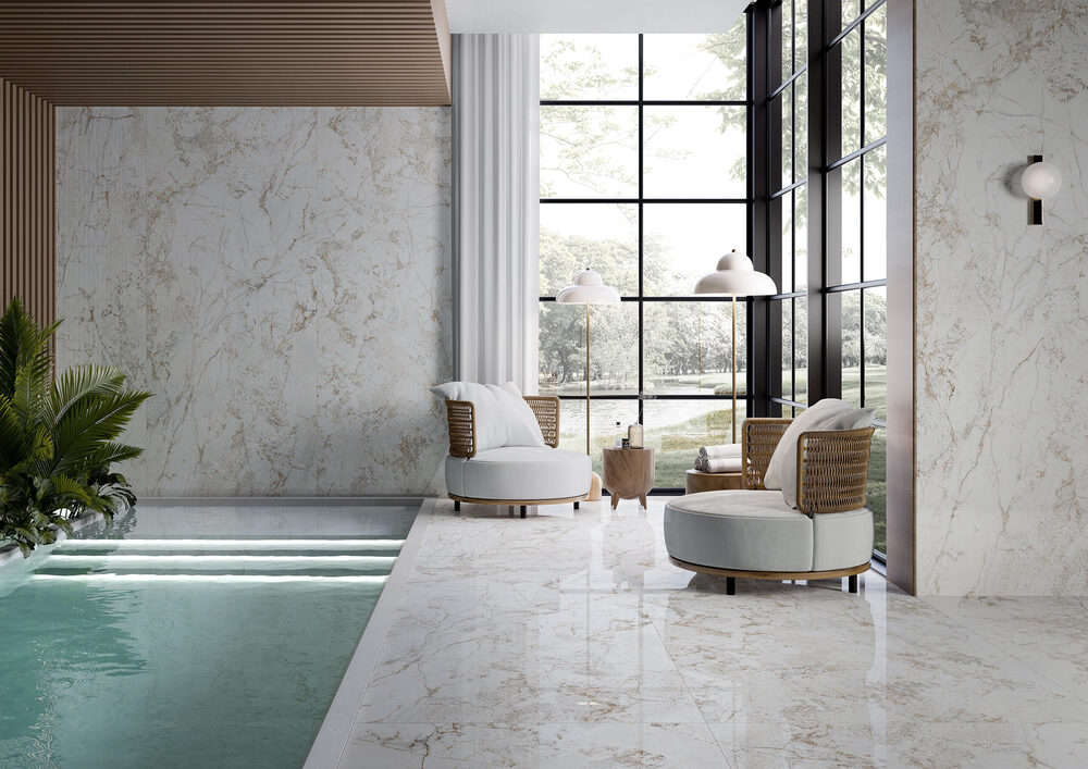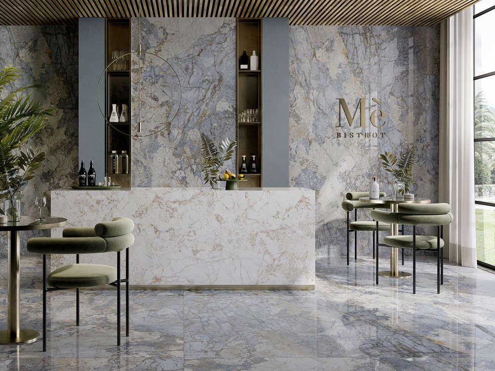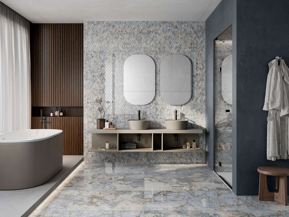 Коллекция керамогранита Ava Gemstone выполнена в двух текстурах: полированной и натуральной (матовой). Для облицовки стен и укладки на пол предлагается два удобных формата 60x120 и 120x280. На стене они гармоничны в горизонтальном или вертикальном монтаже. Дизайн серии продуктов - имитация натурального мрамора в четырёх цветах.