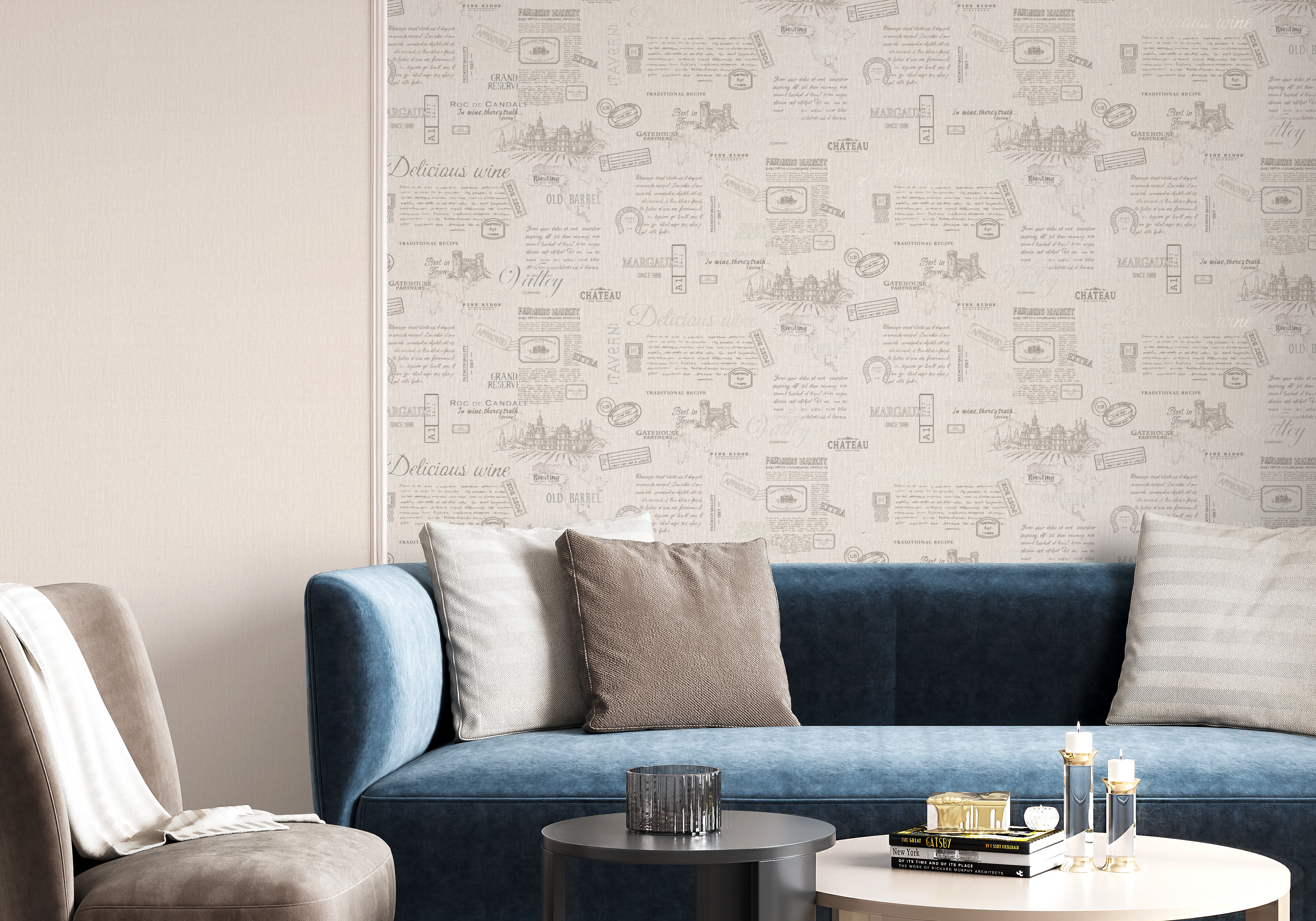 Винтажный мотив обоев Grand украшают изящные строчки на старинных открытках, почтовые штемпели и рисунки европейских замков. Очарование французской провинции проникнуто интерьерным вайбом спокойствия и гармонии.