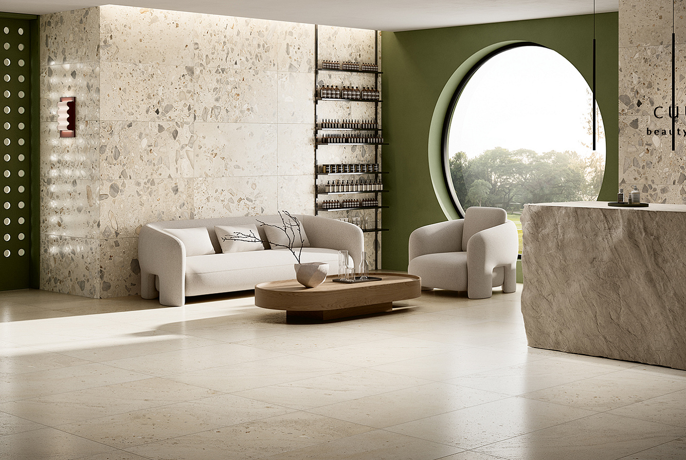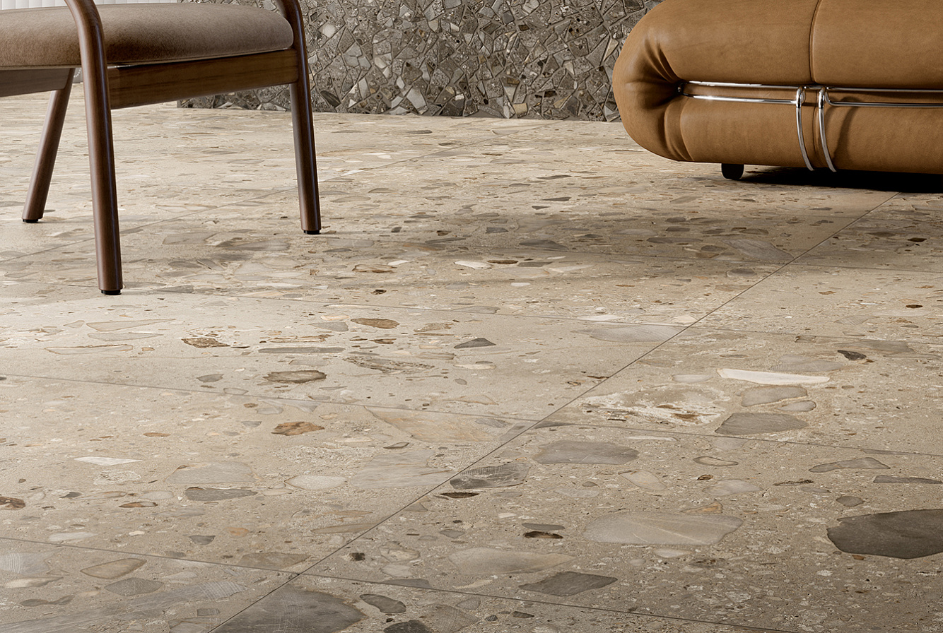 FIORANESE I CIOTTOLI / ФИОРАНЕЗЕ И ЧИОТТОЛИ — коллекция ректифицированного керамогранита с выразительной графикой, вдохновленная редким видом известнякового камня. Такой сорт камня характеризуется включениями разной зернистости, что придает поверхности керамогранита исключительную глубину и динамичность.