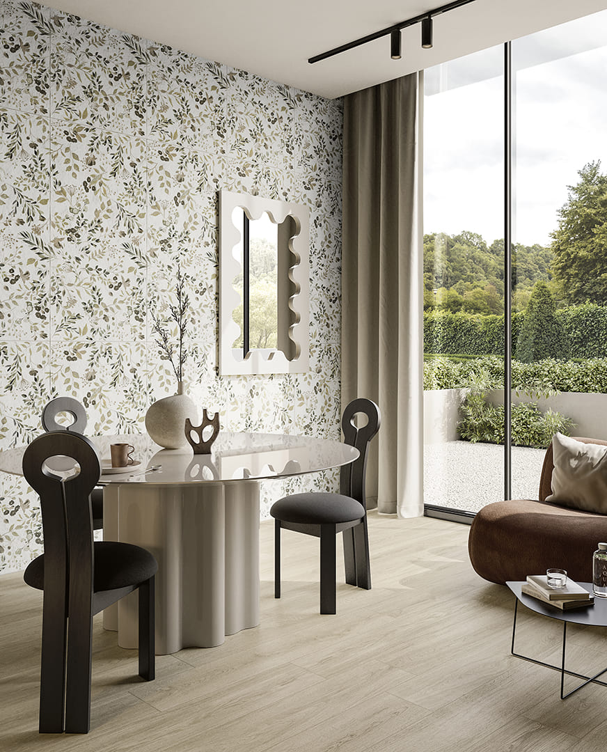 Icons — это коллекция керамических плит с культовыми мотивами в стиле обоев. Эти декоративные узоры, нанесенные прямо на поверхность керамогранита, по цвету и рисунку напоминают природу. Коллекция Icons включает 3 цветочных мотива: Icons 01 — красочный цветочный декор, наполненный хроматической энергией, основа для покрытий, которые благодаря непрерывности рисунка подчеркивают эффект обоев. Его также рекомендуется использовать на полу для создания эффекта ковра или выделения определенных зон. Icons 02 — это цветочный декор с более нежным характером. Эти обои идеально подходят для создания особого покрытия для душевой кабины. На Icons 03 изображены маленькие увядшие цветы и листья бежевого и оливково-зелёного цветов на сияющем белом фоне.