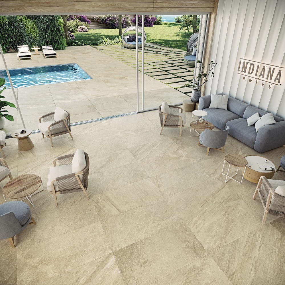 Коллекция INDIANA от фабрики Grespania (Испания) идеально воспроизводит рисунок и текстуру натурального камня кварцита с мягким, едва заметным рельефом в четырех цветовых гаммах: белой, бежевой, серой и многоцветной. Универсальный керамогранит выполнен в большом формате 60х120 см с матовой поверхностью, которая обладает высокими противоскользящими свойствами. Фактура натурального камня в сочетании с матовой поверхностью и нейтральными оттенками создает сдержанную и спокойную атмосферу в любом пространстве, органично вписывается в современную стилистику с минималистичным дизайном и другие актуальные направления. Коллекция может использоваться для отделки пола и стен холлов, прихожих, гостиных, ванных комнат, кухонь, веранд, придомовых территорий и других частных и общественных помещений. Ректифицированные края плит позволят произвести укладку с минимальными швами, что создаст иллюзию монолитного покрытия. В каждом артикуле есть много вариантов графических решений, что усиливает впечатление естественности покрытия. Этот керамогранит прочен, практичен, износостоек, устойчив к влаге и температурным перепадам, механическим повреждениям и химическим веществам.