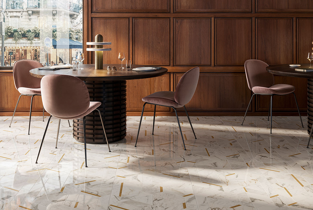 Магия совершенства воплощается в шести элегантных узорах: Civita, Frida, Pablo, Raffaello, Tiziano и Vinci, которые являются одой красоте. Геометрия переплетается с благородством мрамора, создавая рисунок, рассказывающий истории о смелых замыслах, превращая пространства в сундуки с эмоциями.