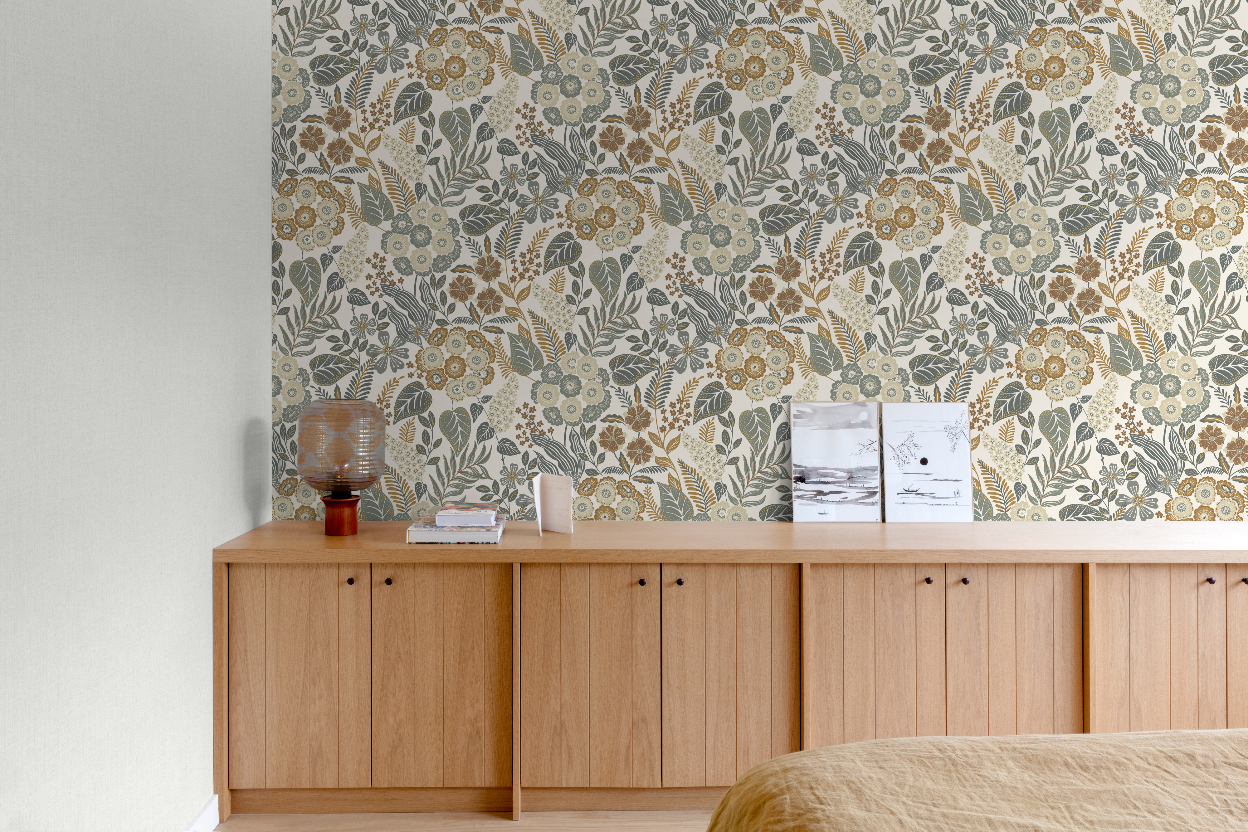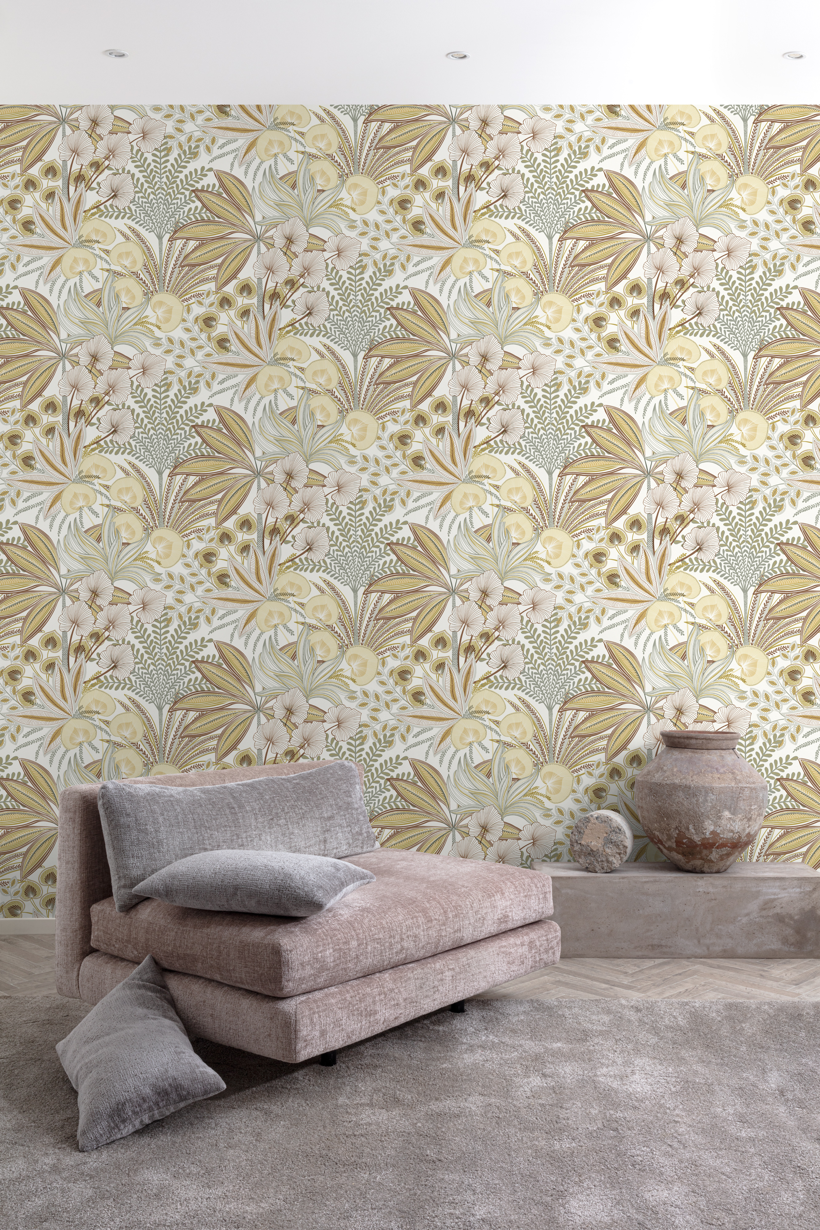 В узорах Karuna отражены изящные природные мотивы: утонченные переплетения листьев передают свежесть зелени и дарят ощущение легкости, а элегантная геометрия в натуральных оттенках привносит в пространство тепло и изысканность. Эти обои идеально сочетаются с натуральными материалами – деревом, камнем, льняными и хлопковыми тканями, создавая интерьер, наполненный уютом и природной гармонией.