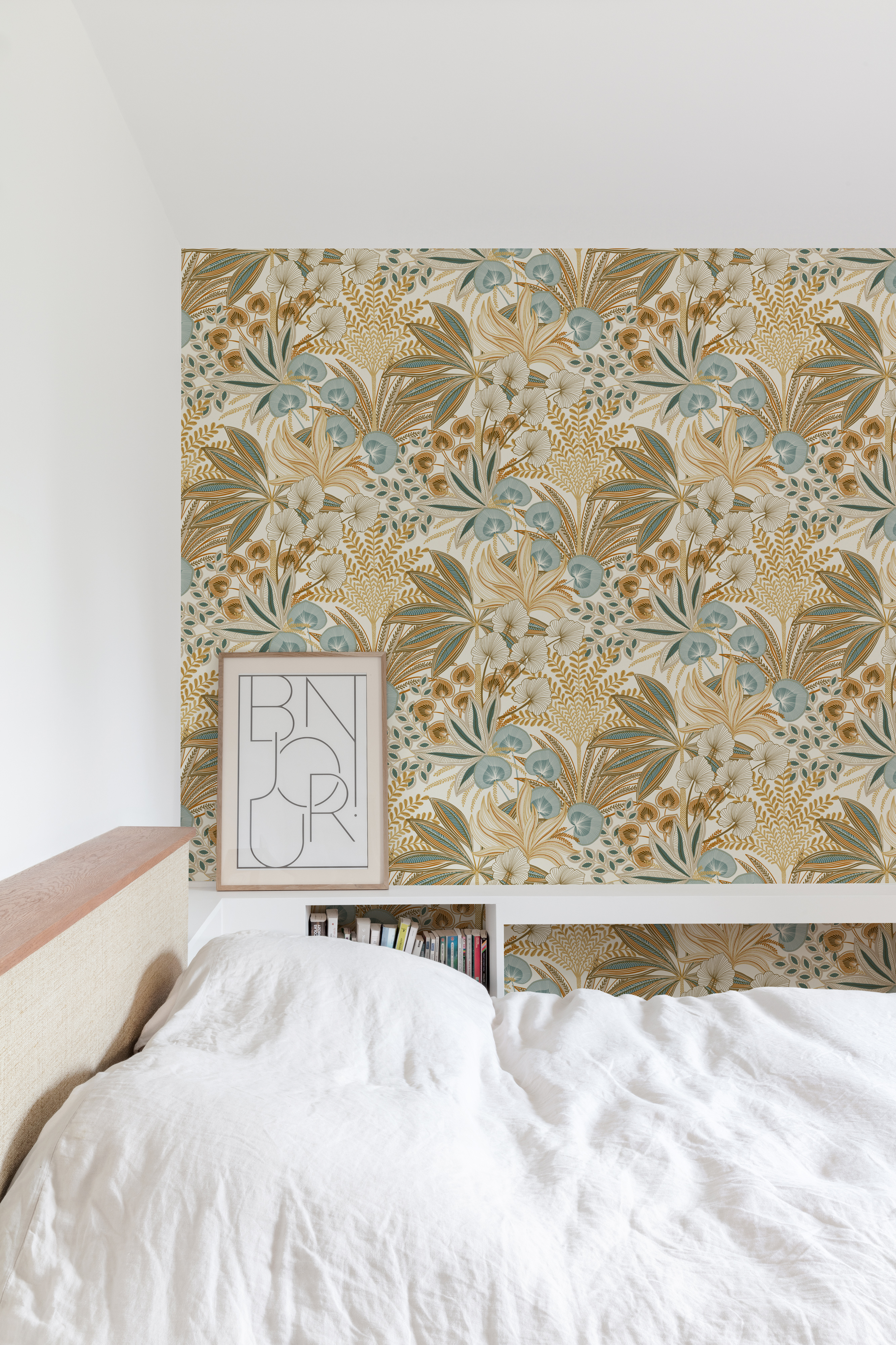 Яркие и выразительные мотивы Karuna станут эффектным акцентом на одной из стен, превращая комнату в настоящее арт-пространство. А если вы предпочитаете более сдержанный стиль, мягкие и спокойные расцветки помогут создать атмосферу умиротворения и уюта.