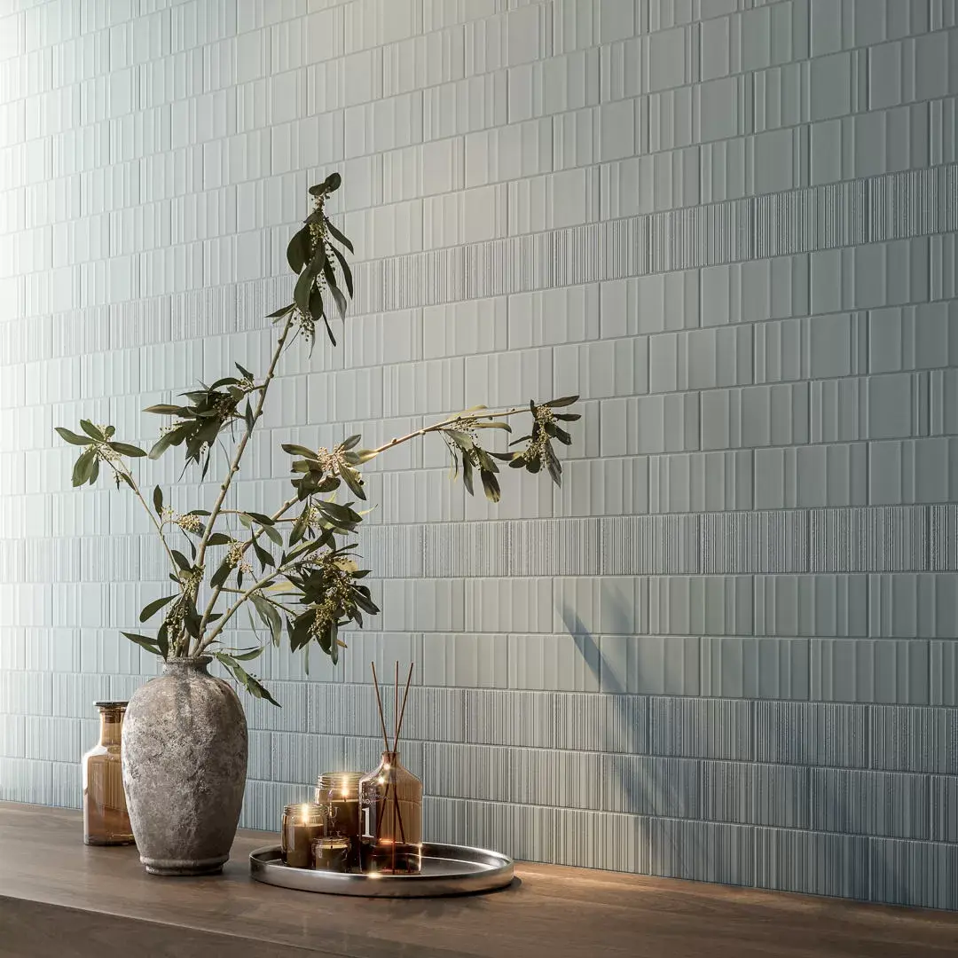 В серии «Касба» матовые моноколоры формата 7,4×15 представлены в шести цветах: помимо белого и чёрного, это розовый, серо-бежевый, серый и зелёный. Плитку украшает структура из тонких полос, расположение которых варьируется, создавая живой, динамичный рельеф. В декоративных элементах эти линии дополнительно подчёркнуты переливающимся составом: на зелёных и чёрных декорах — с мерцающими вкраплениями, а для остальных оттенков — с утончённым перламутровым блеском.