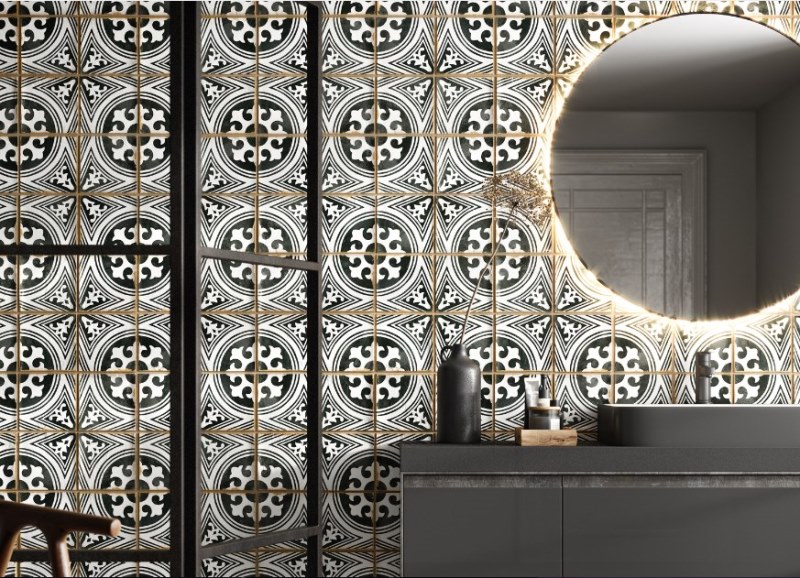 Керамическая плитка Harmony Peronda Casablanca Fida матовая кремово-черная 0278029413 12,5х12,5 см