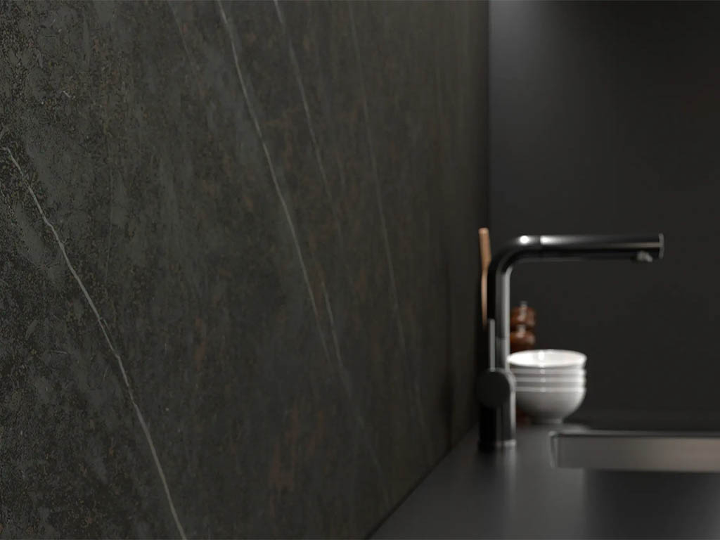 Керамогранит Ascale Allure Bookmatch Black A Velvet черный 320х160 см