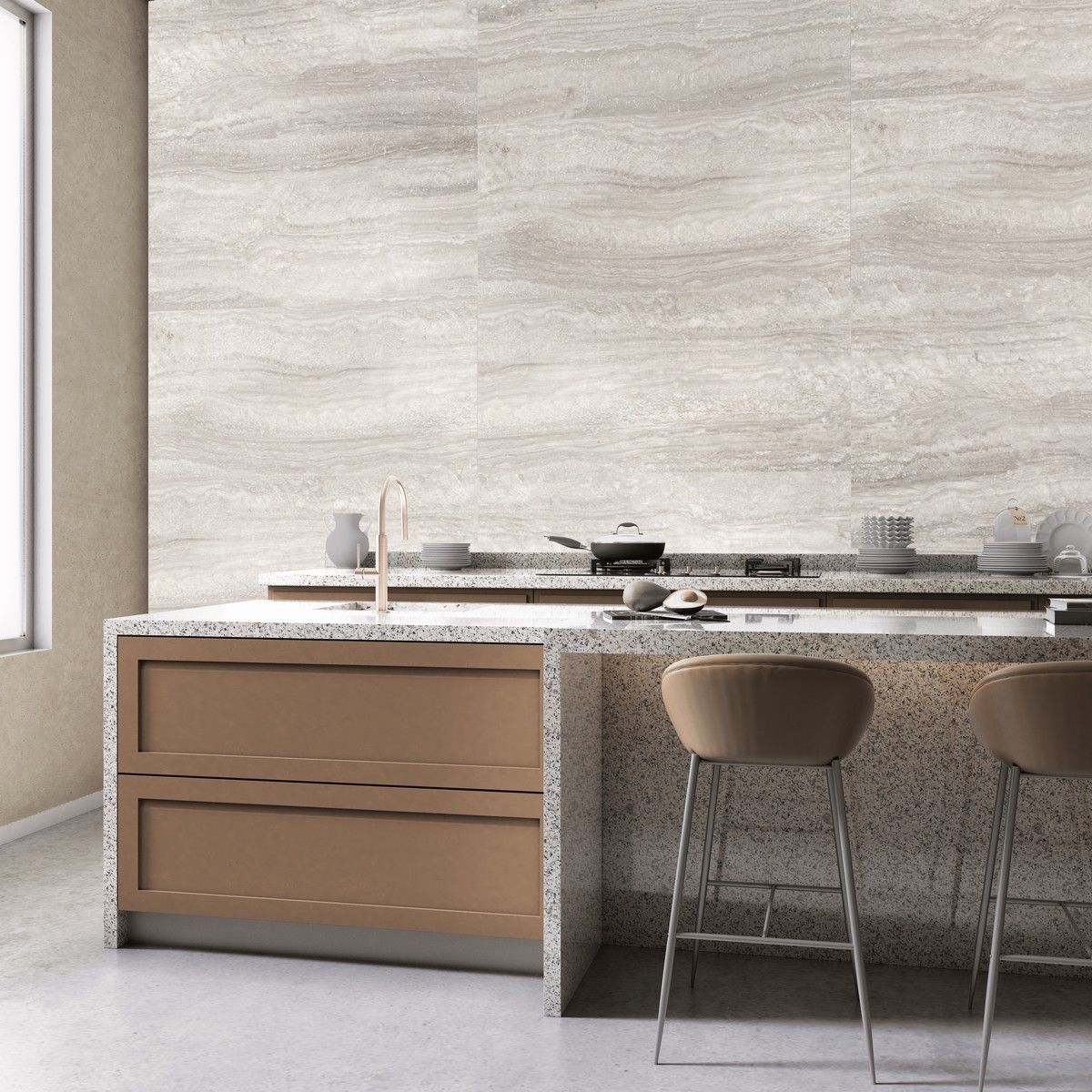 Керамогранит Neodom Sale Travertino Romano Satin матовый серый N20465 120х60 см